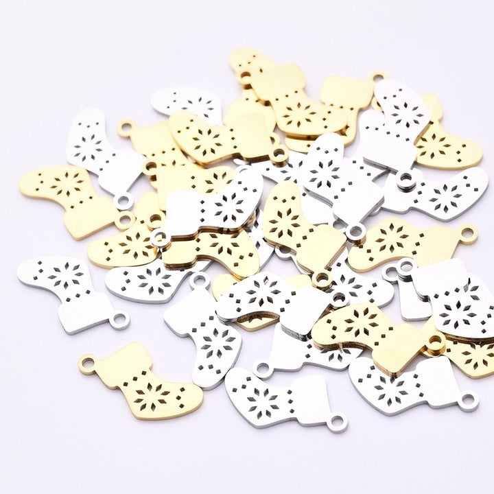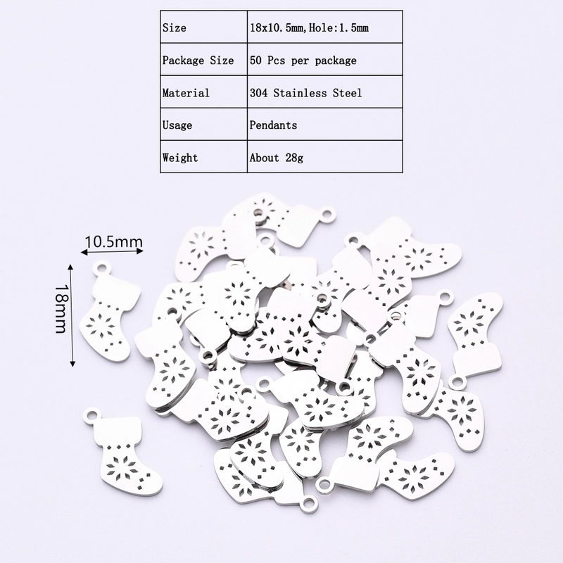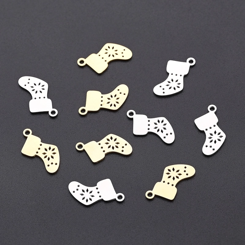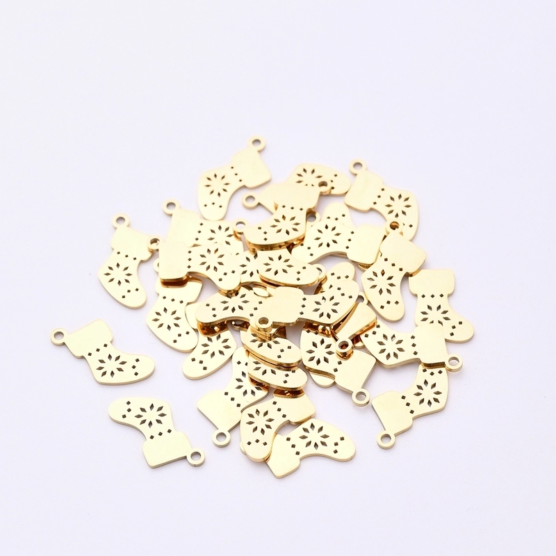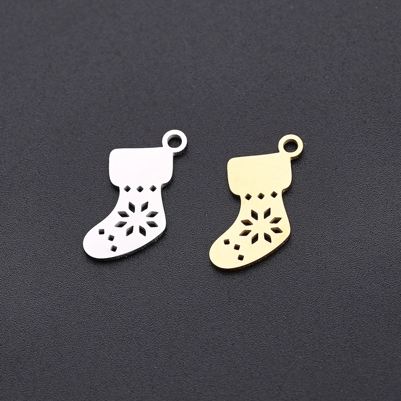 50 Pcs/Package 10.5*18Mm Hole 1~1.9Mm 304 Stainless Steel Gold Plated Christmas Socks Polished Pendant Jewelry Accessories