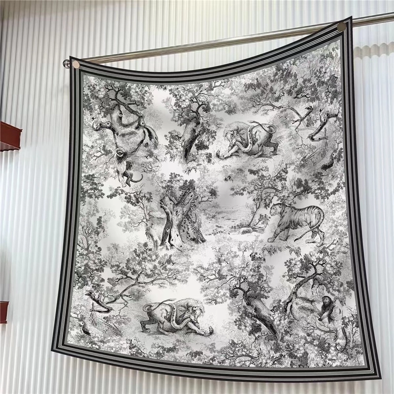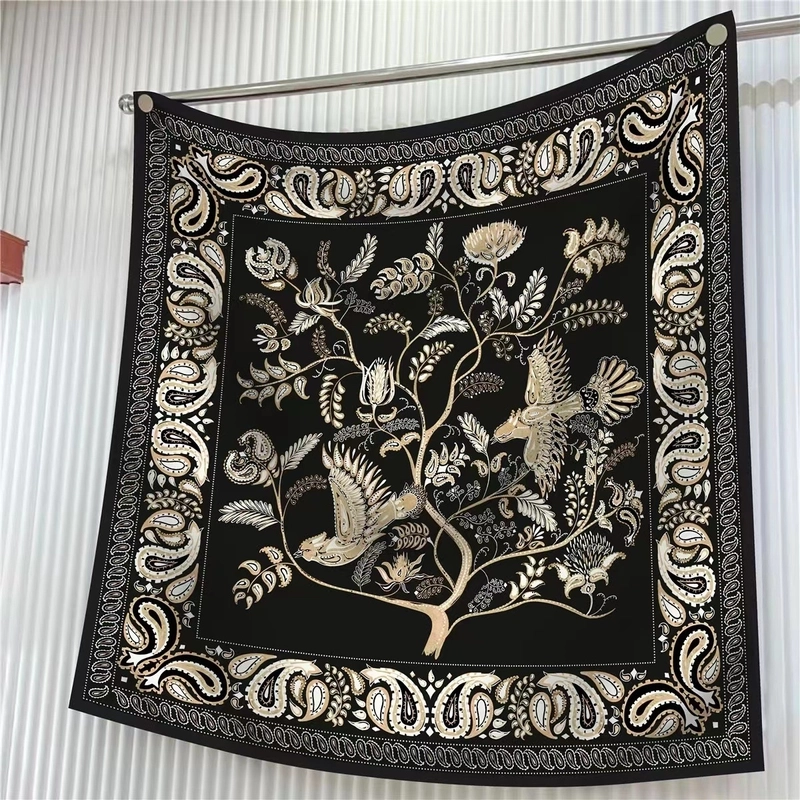90Cm * 90Cm Hangzhou High Quality Twill Forged Large Square Scarf Fashion Printed Scarf Sunscreen Shawl Scarf