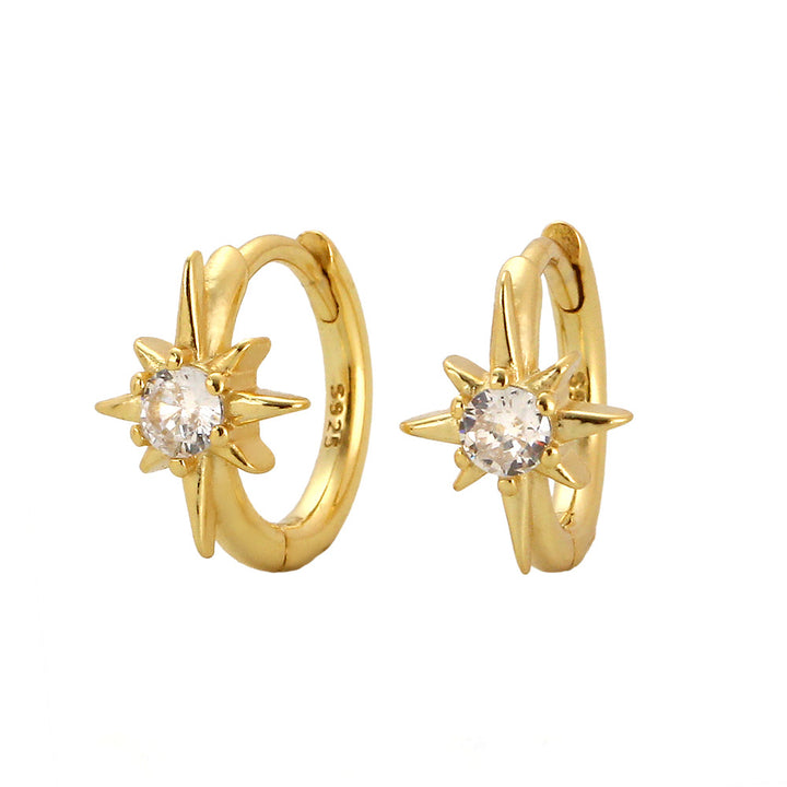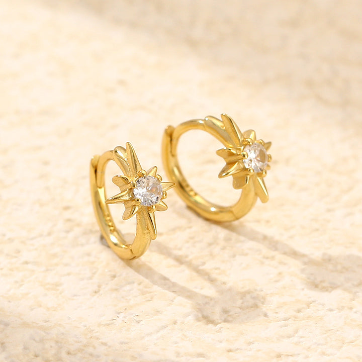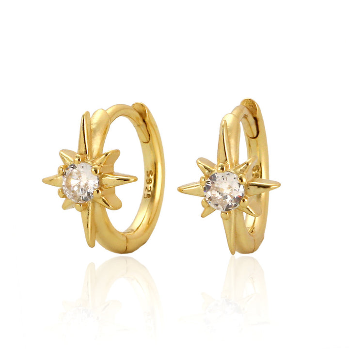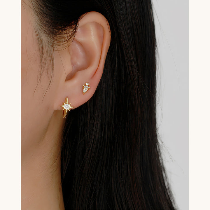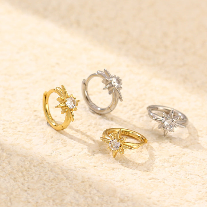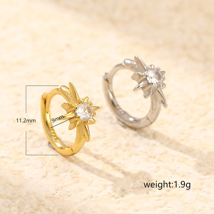 925 Sterling Silver Cute & Edgy Octagram Geometric Silver Diamond Inlay Earrings