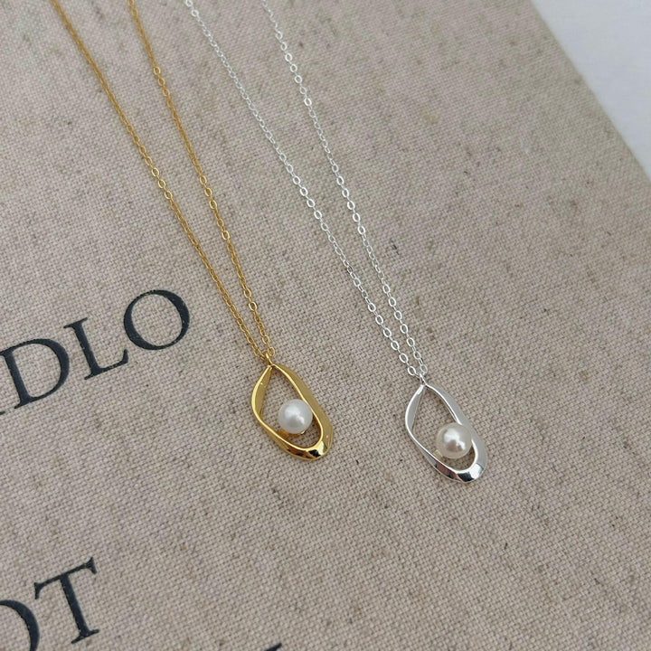 925 Sterling Silver Ig Style Pearl Geometric Silver Necklaces