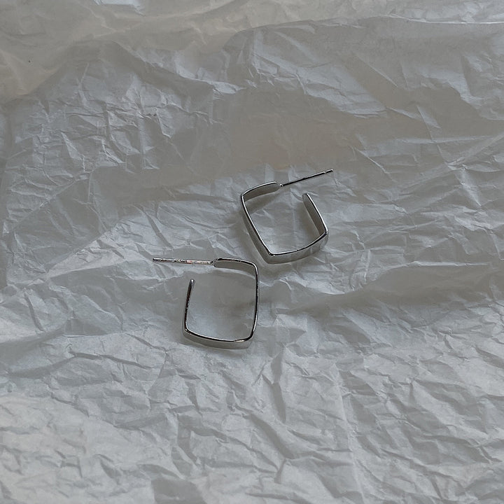 925 Sterling Silver Japanese / Korean Quadrilateral Droplet Silver Pearl Inlay Stud Earrings