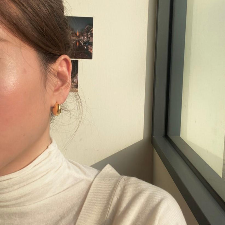 925 Sterling Silver Minimalist Ellipse Circle Round Droplet Silver Pearl Inlay Stud Earrings