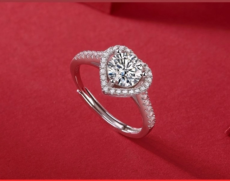 925 Sterling Silver Moissanite Heart Shape Open Rings
