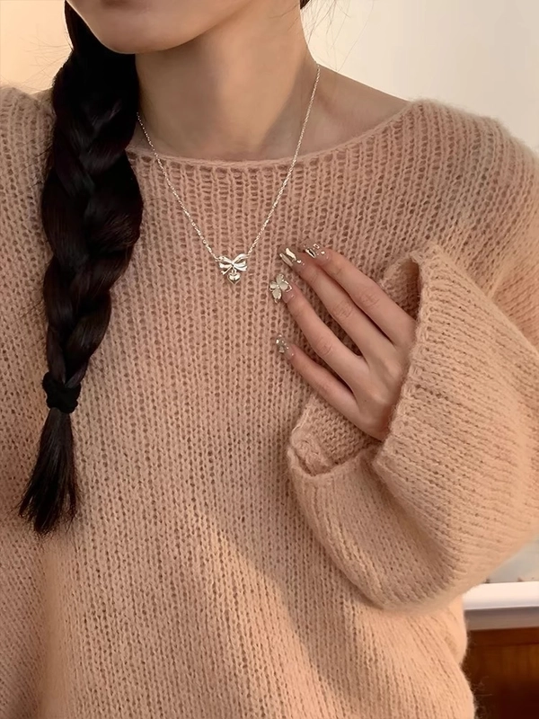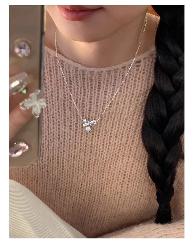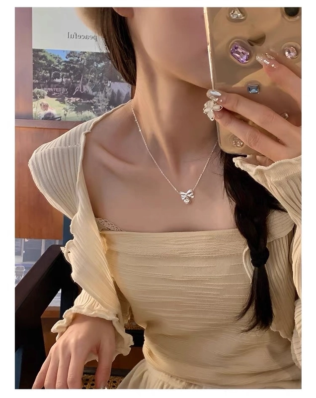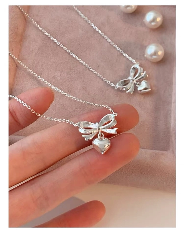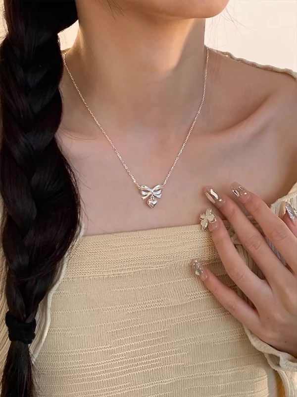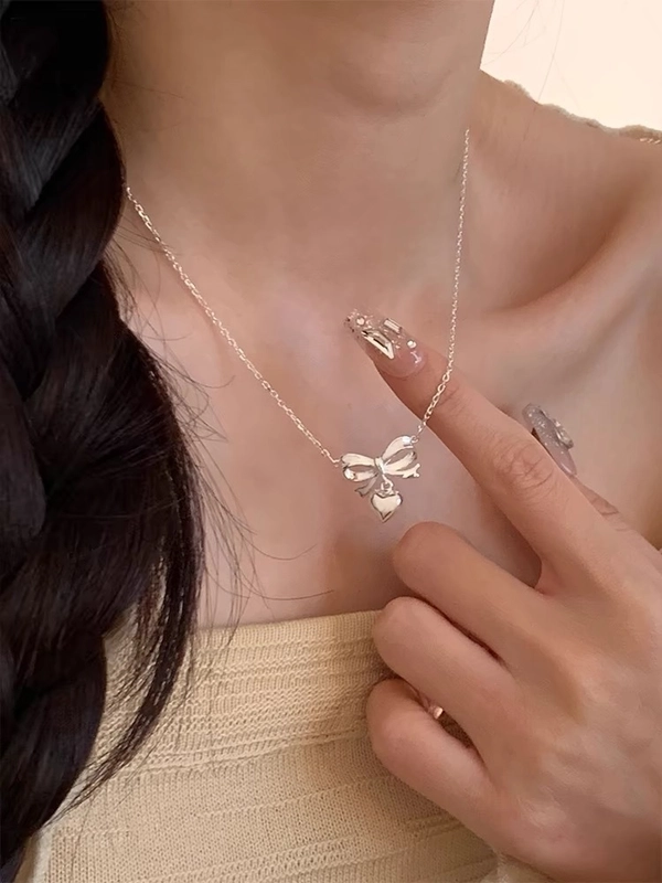 925 Sterling Silver Plating Bow Knot Pendant Necklace