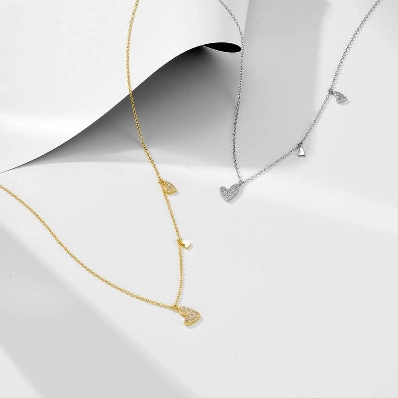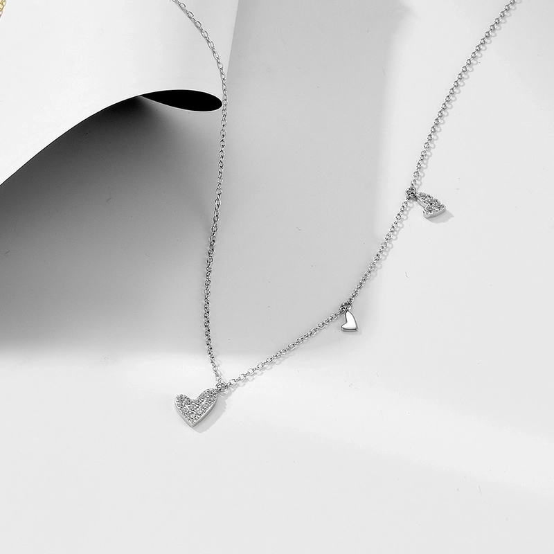 925 Sterling Silver Zircon Heart Shape Pendant Necklace