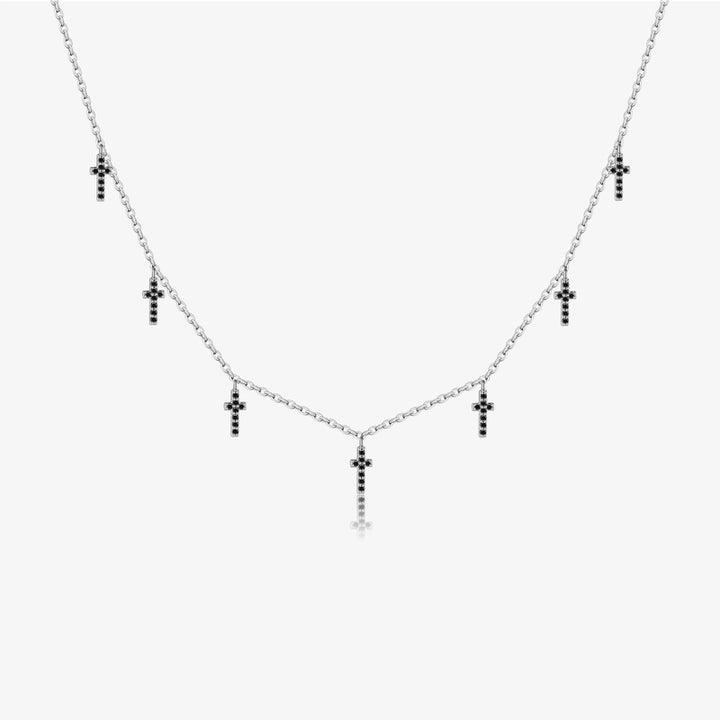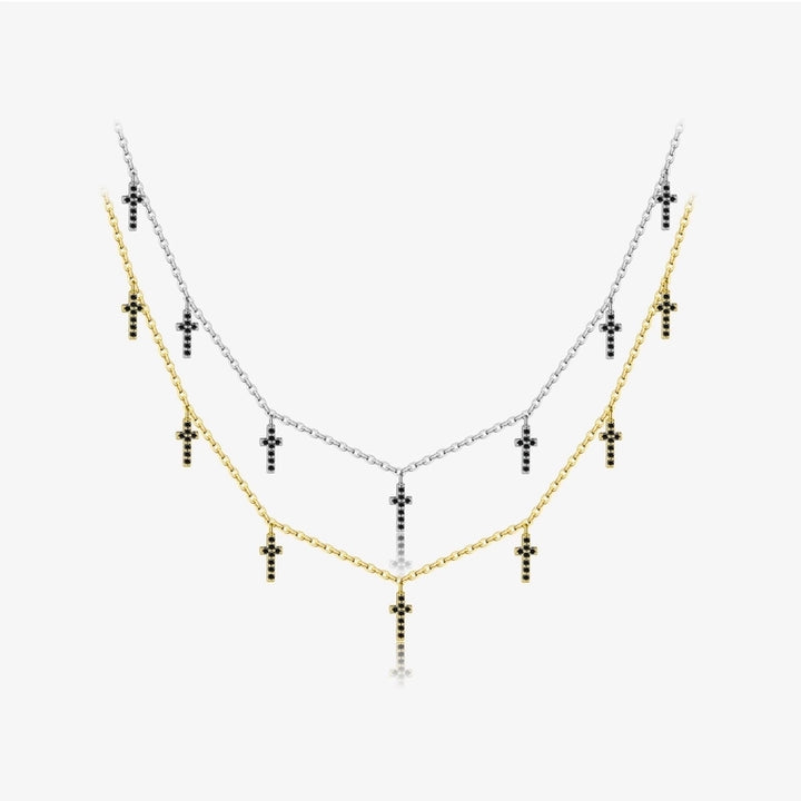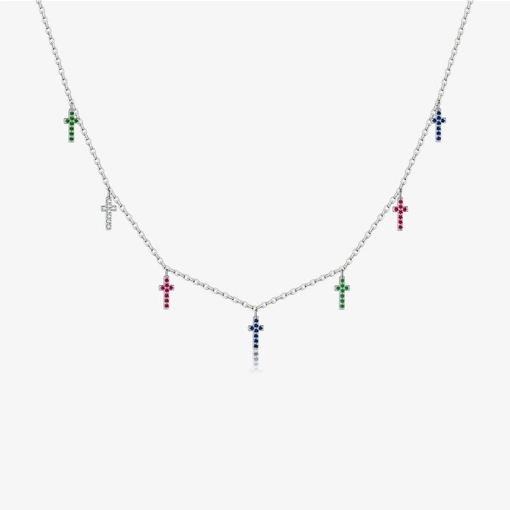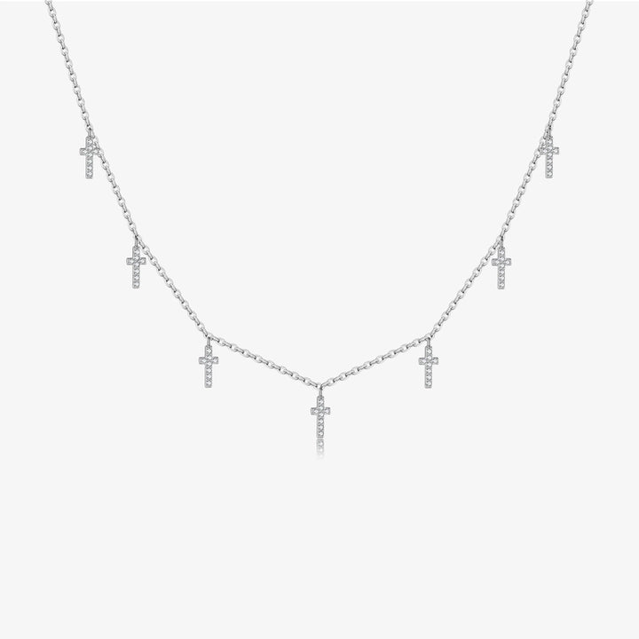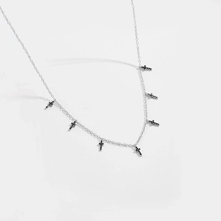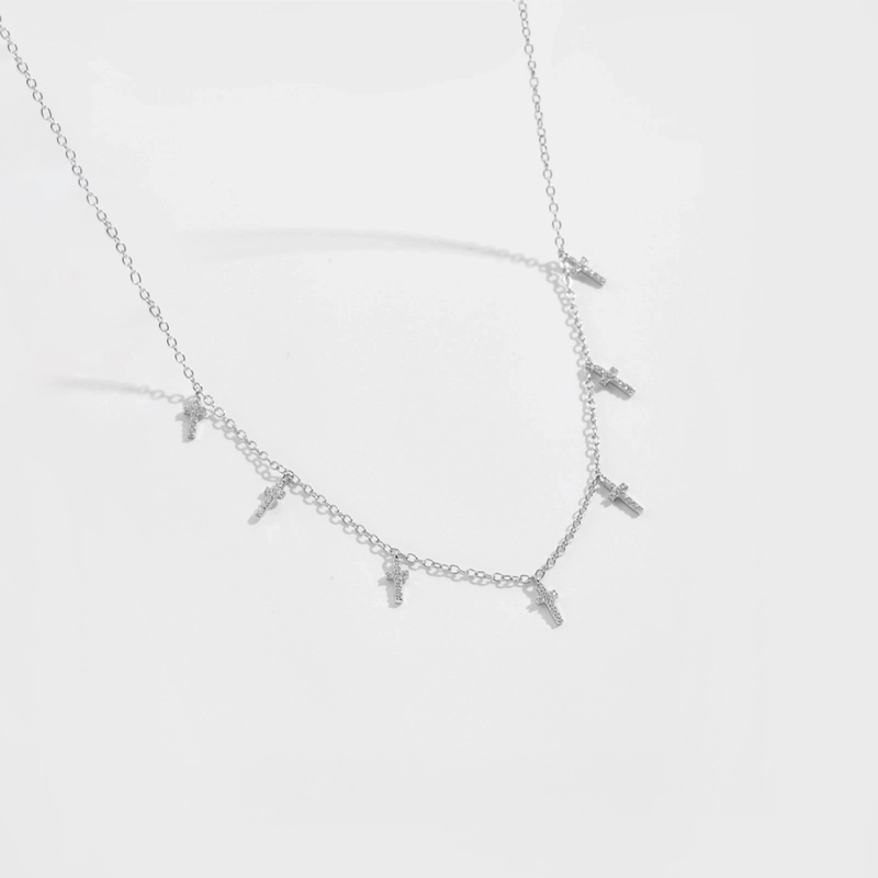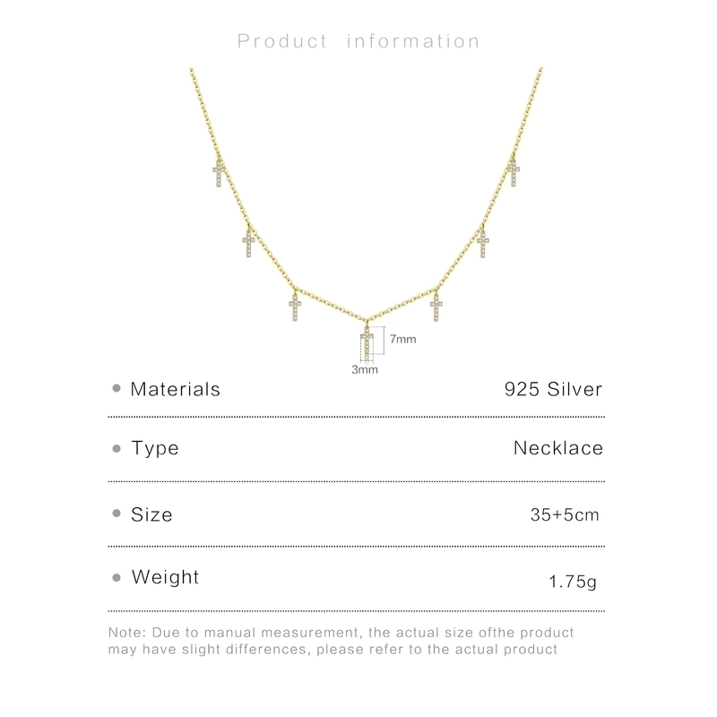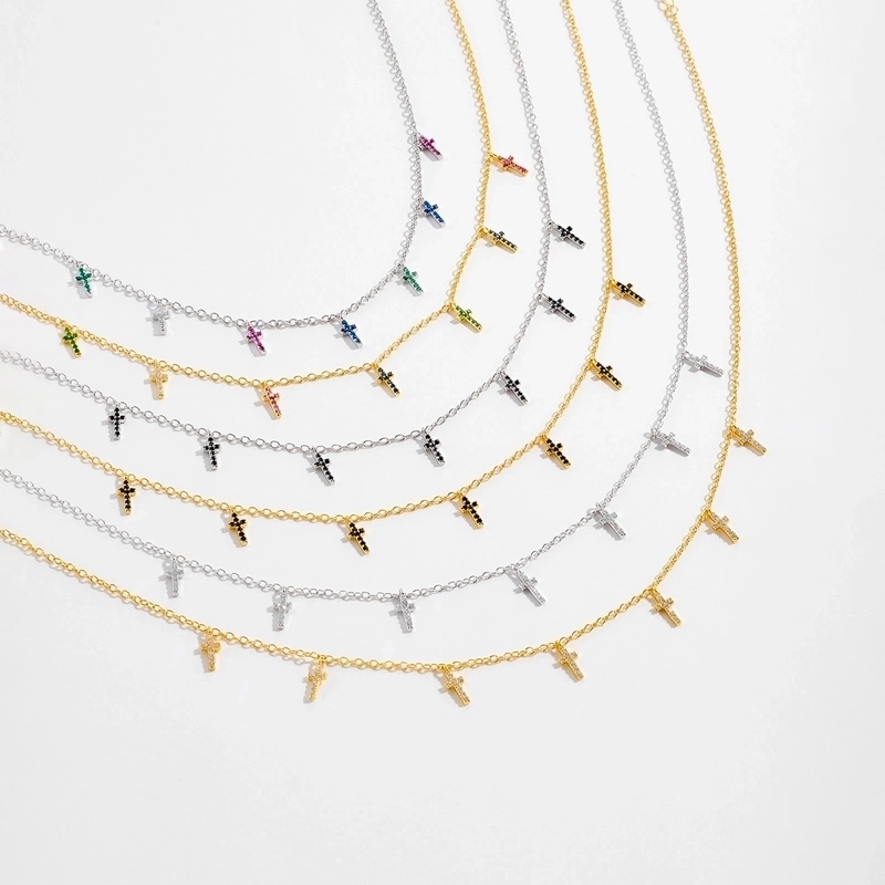 925 Sterling Silver Zircon Inlay Cross Pendant Necklace