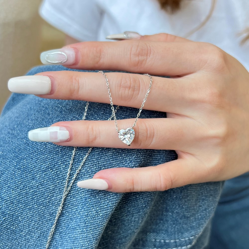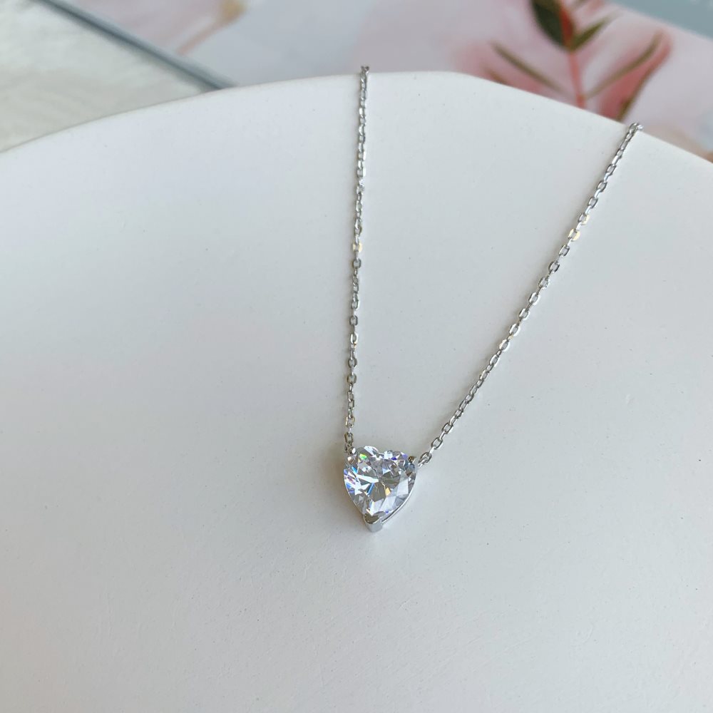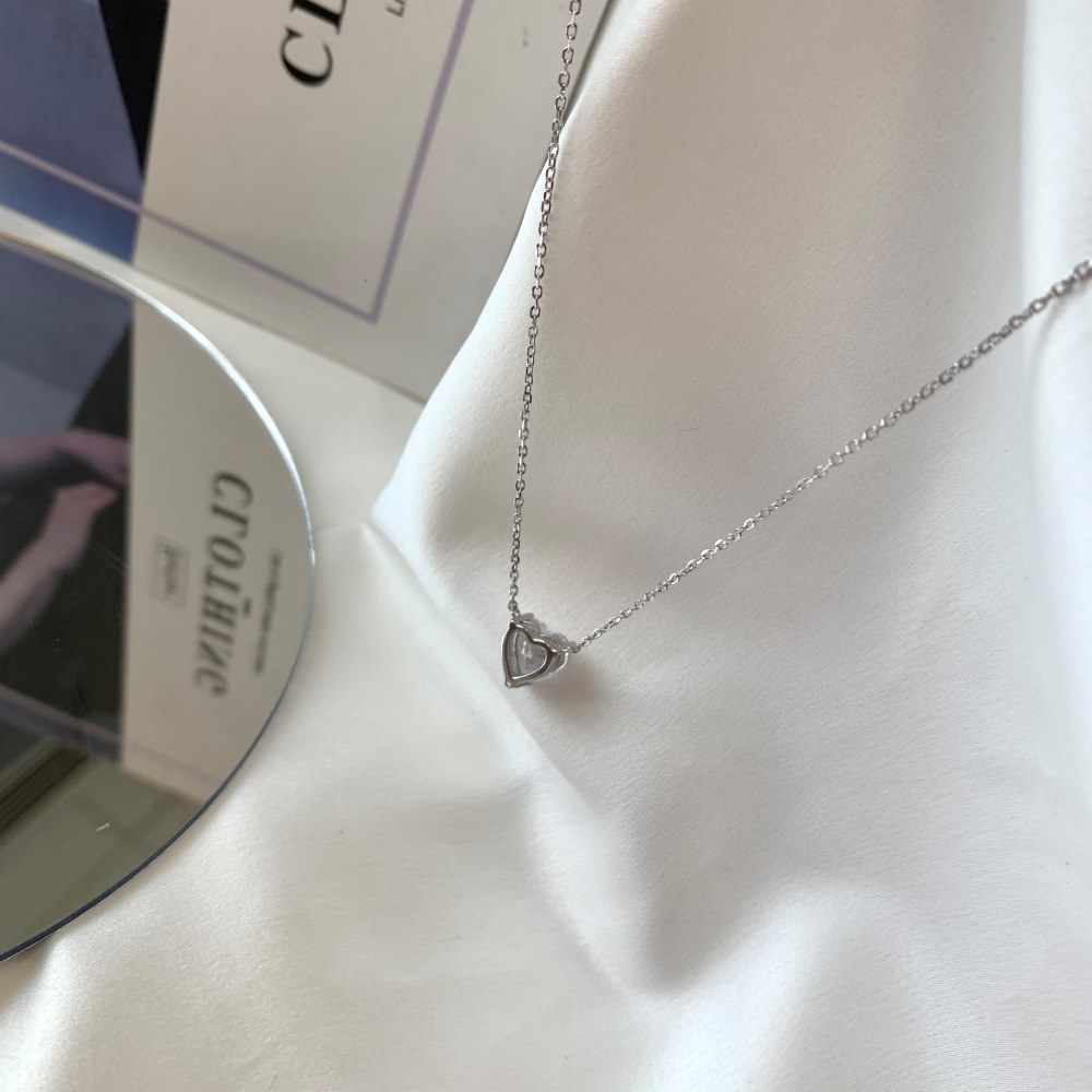 925 Sterling Silver Zircon Inlay Heart Shape Pendant Necklace