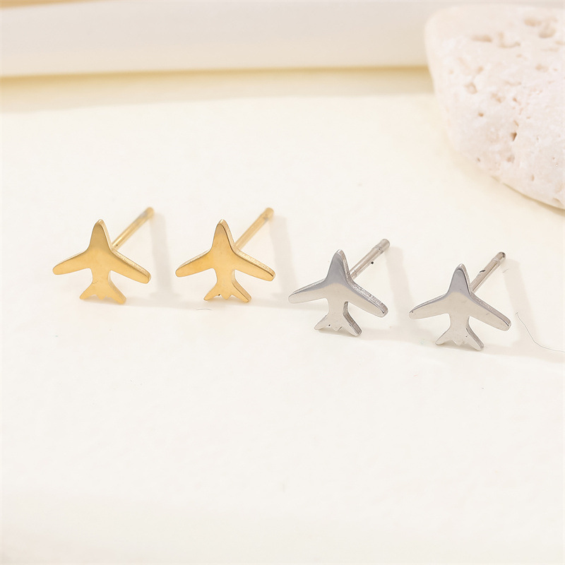 Airplane Stainless Steel No Inlaid Earrings Ear Studs