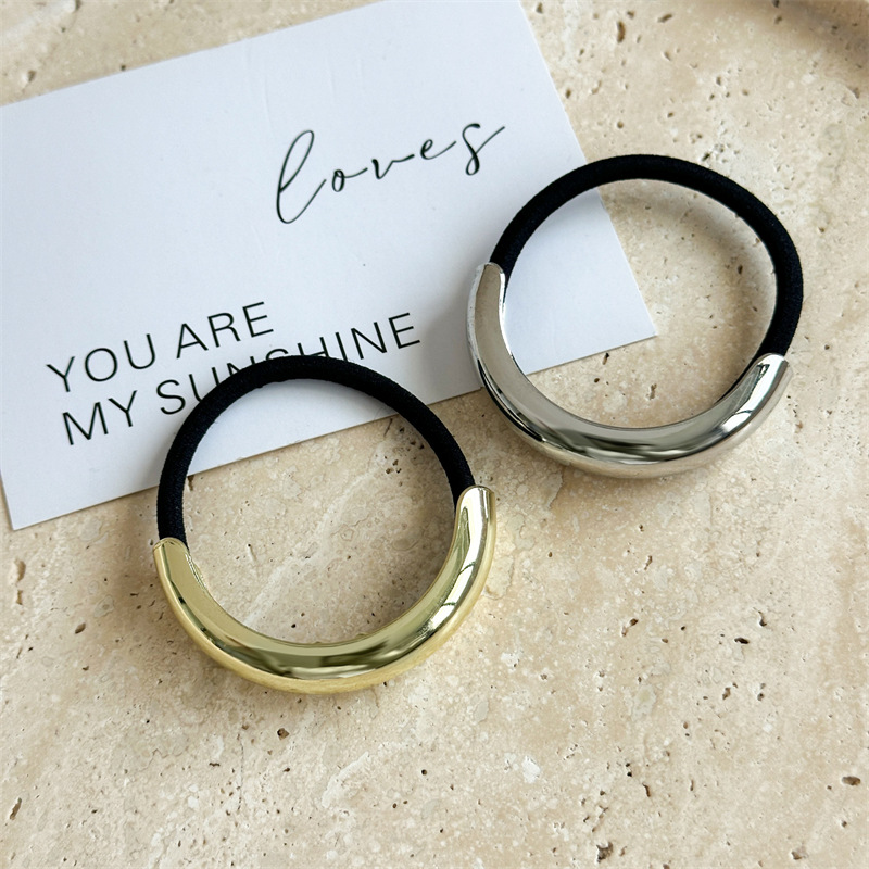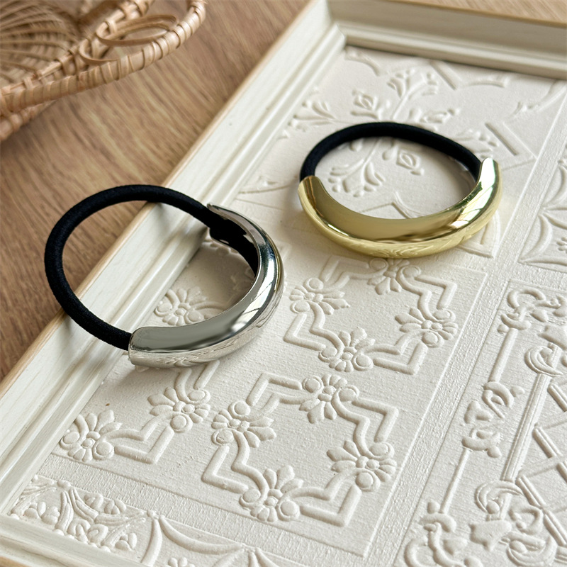 Alloy Minimalist Alloy Ring Semi-Curved Hair Ring Online Influencer Head String Female 2024 New High-End Leather Case Hair Rope