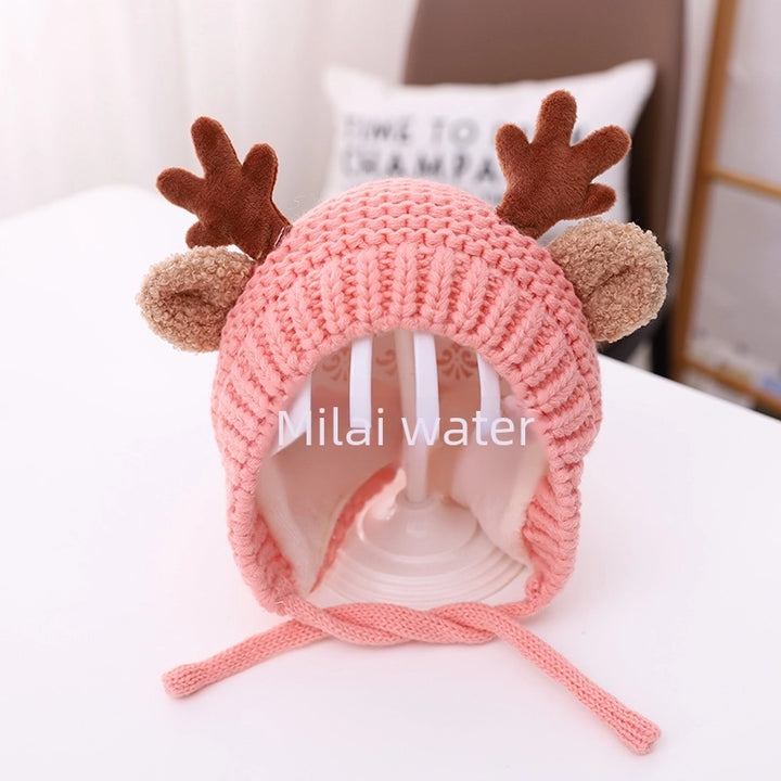 Baby Wool Hat Autumn And Winter Baby Men And Women Velvet Warm Knitted Hat Christmas Antlers Cute Super Cute Shroud Cap