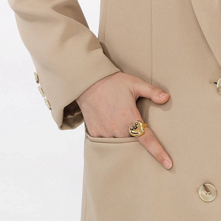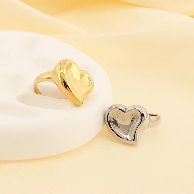Basic Classic Style Commute Heart Shape Solid Color 304 Stainless Steel 18K Gold Plated Rings In Bulk