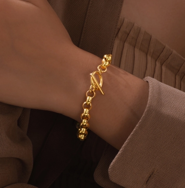 Basic Minimalist Solid Color Titanium Steel 18K Gold Plated Stainless Steel Bracelets In Bulk