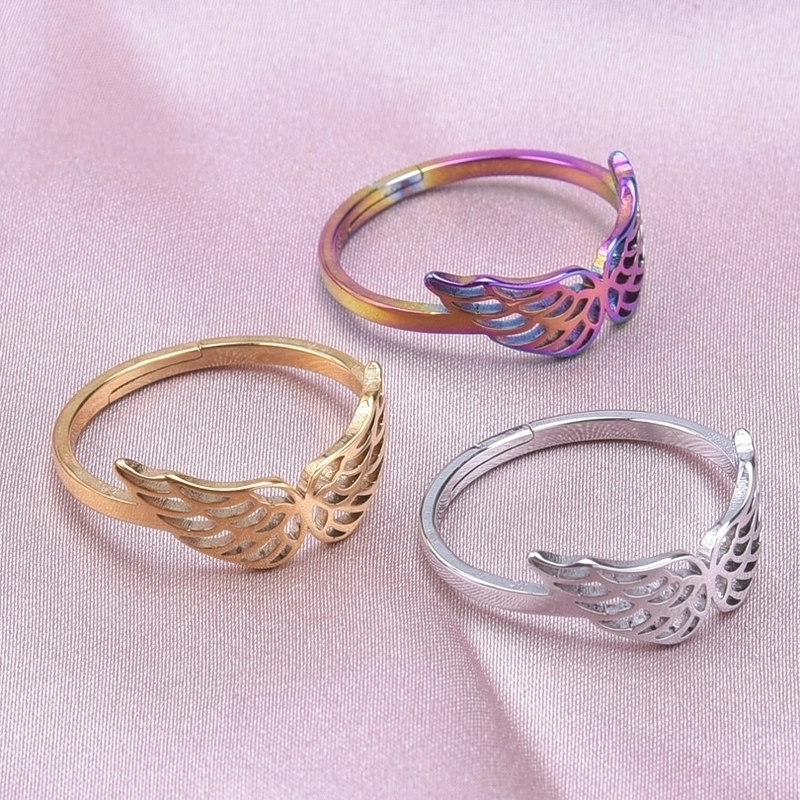 Basic Wings 304 Stainless Steel 18K Gold Plated Open Rings