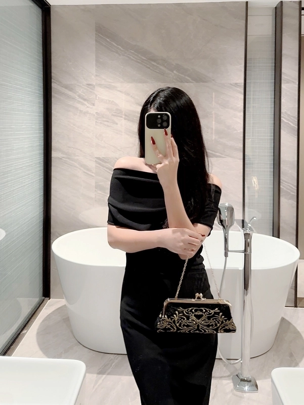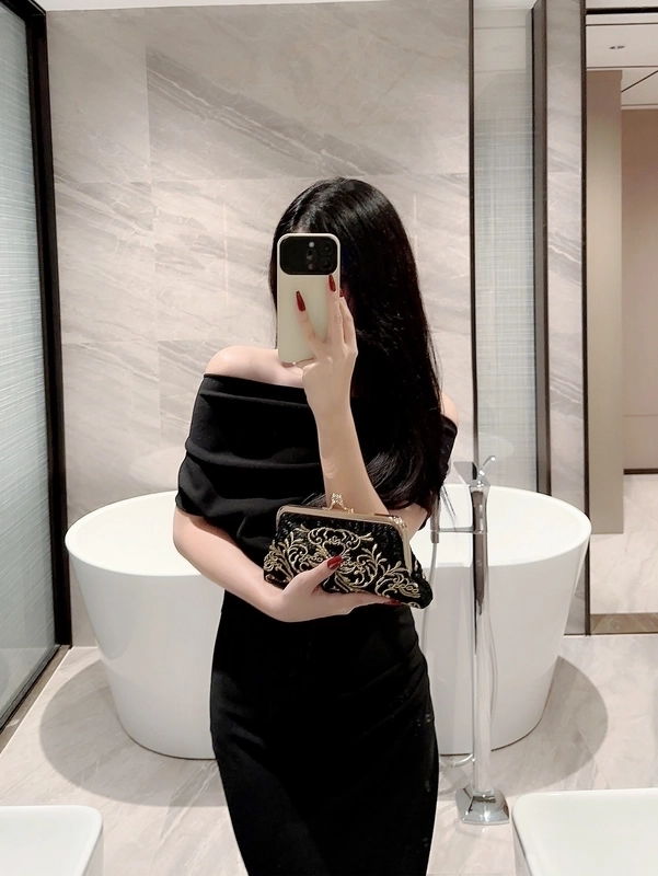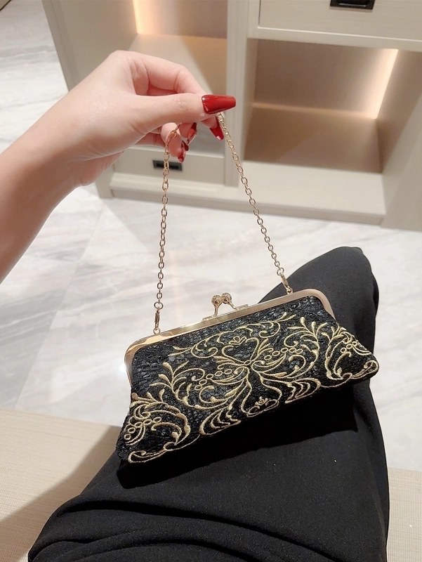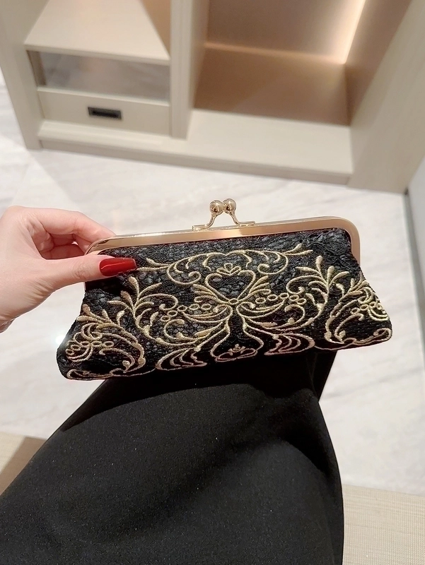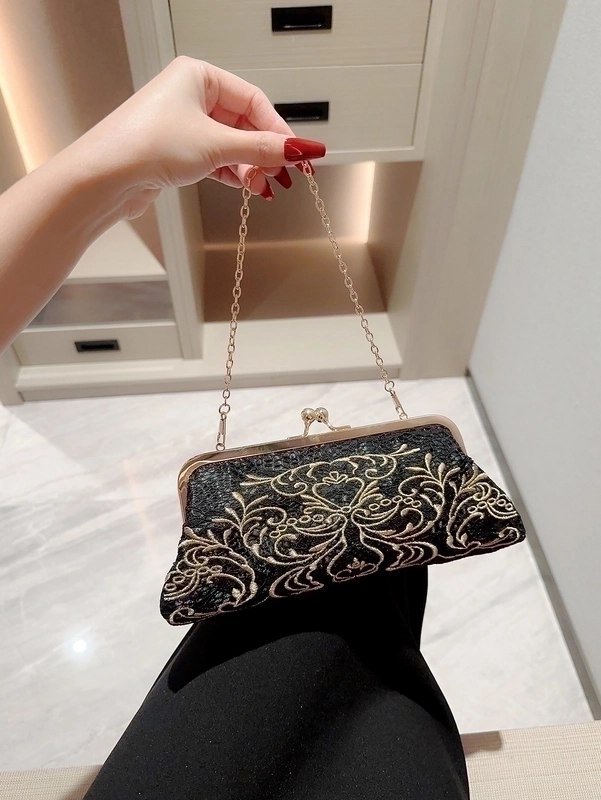 Black Polyester Geometric Embroidery Evening Bags