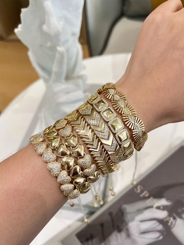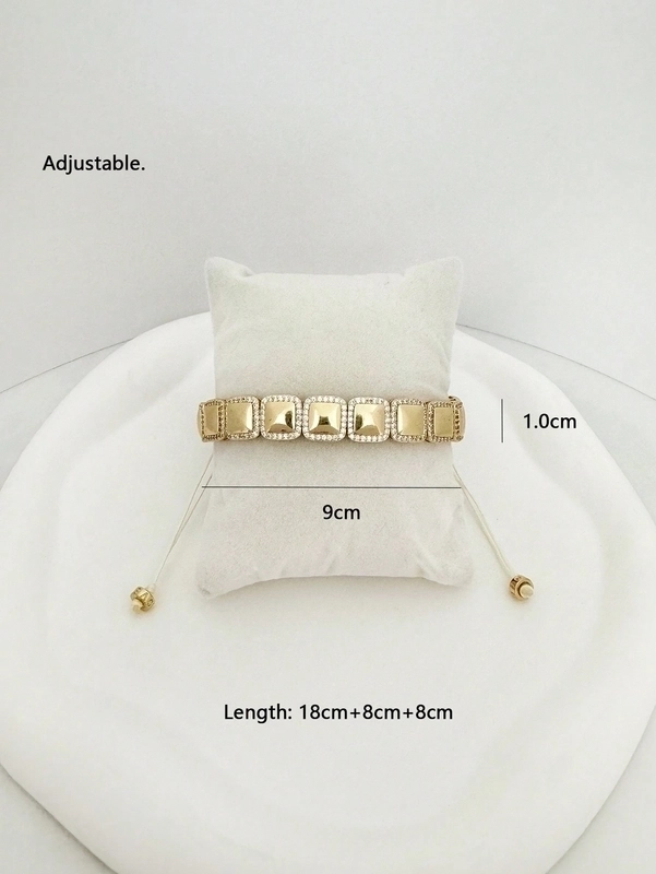 Brass 18K Gold Plated Drawstring Sector Square Heart Shape Zircon Drawstring Bracelets