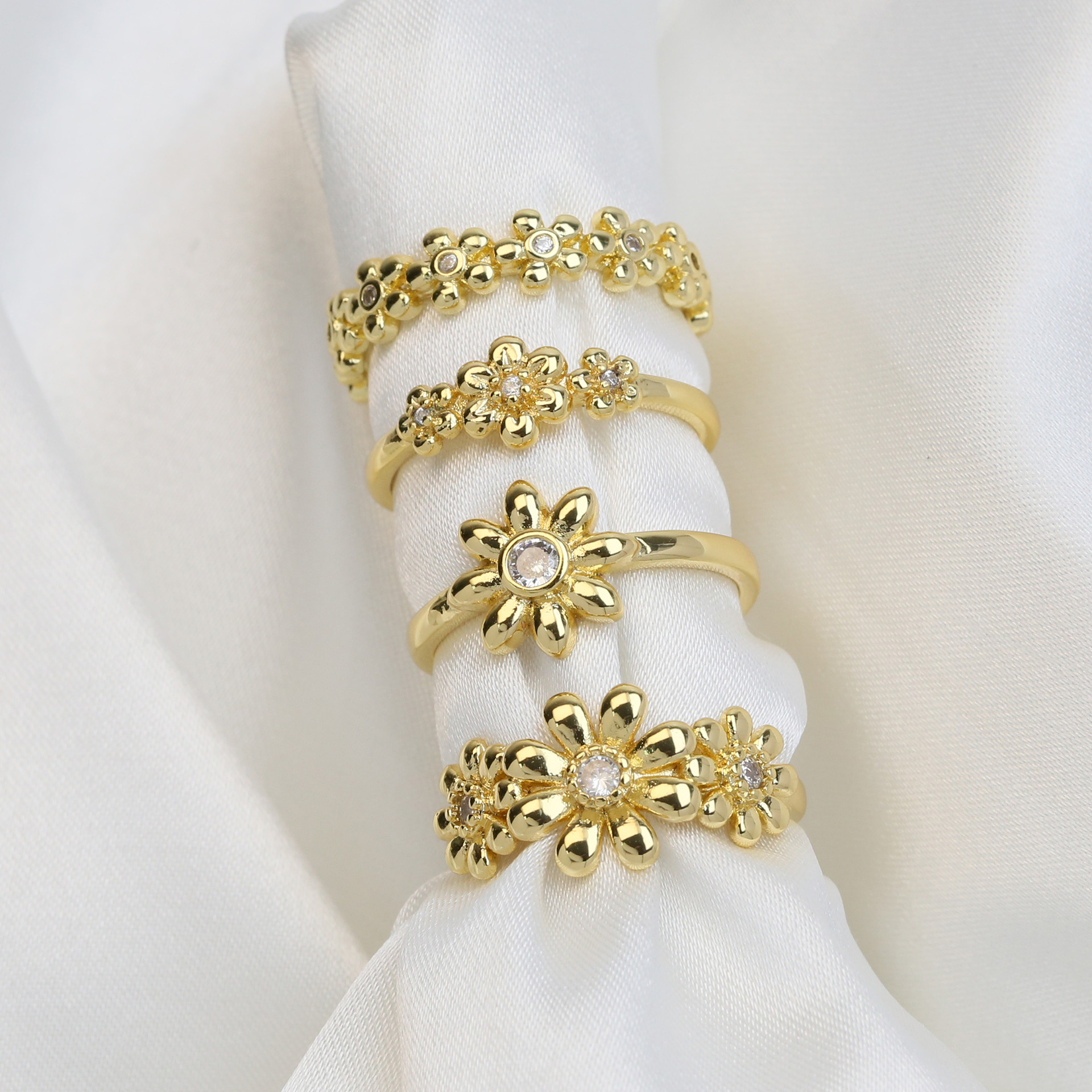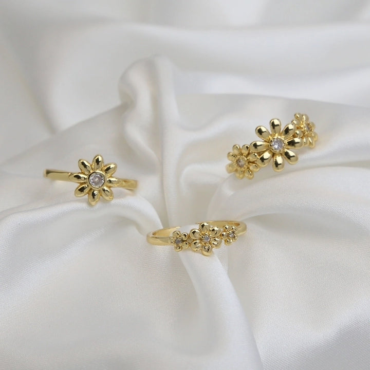 Brass Plating Flower Daisy Open Rings