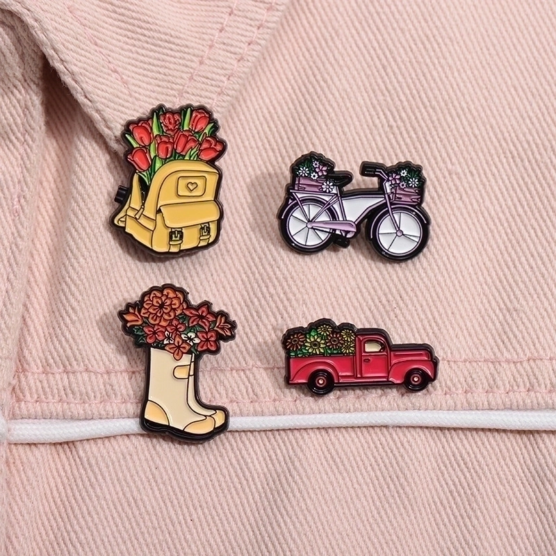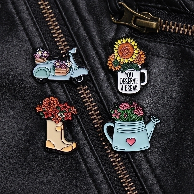 Cartoon Style Cute Cowboy Style Motorcycle Cup Flower Alloy Stoving Varnish Plating Unisex Brooches