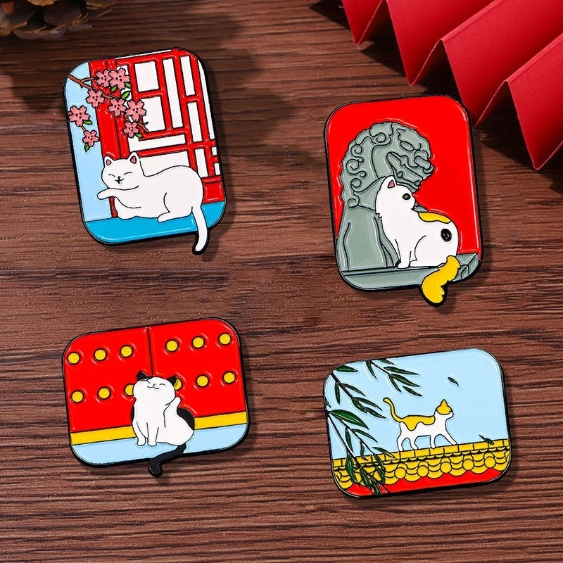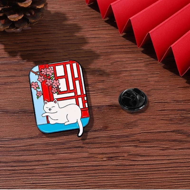 Cartoon Style Oil Painting Cat Landscape Alloy Stoving Varnish Plating Kid'S Unisex Brooches Collar Pin