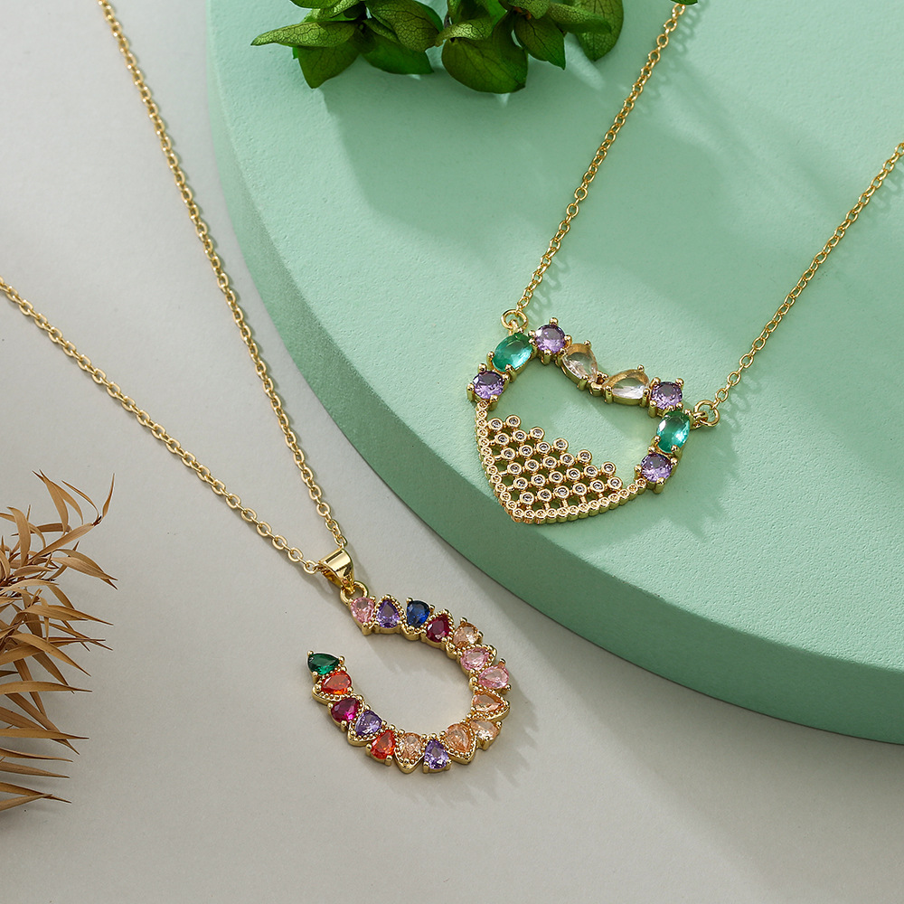 Casual Minimalist Heart Shape Copper Zircon Pendant Necklace 1 Piece