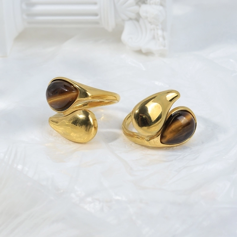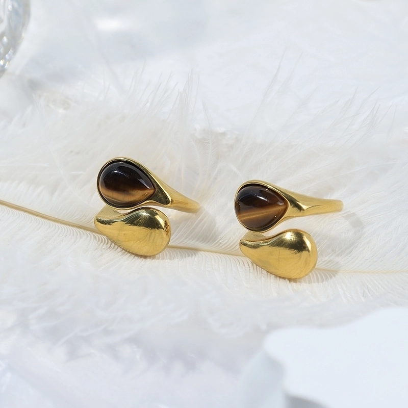 Casual Sweet Cool Style Round Water Droplets 304 Stainless Steel Natural Stone 14K Gold Plated Plating Inlay Rings