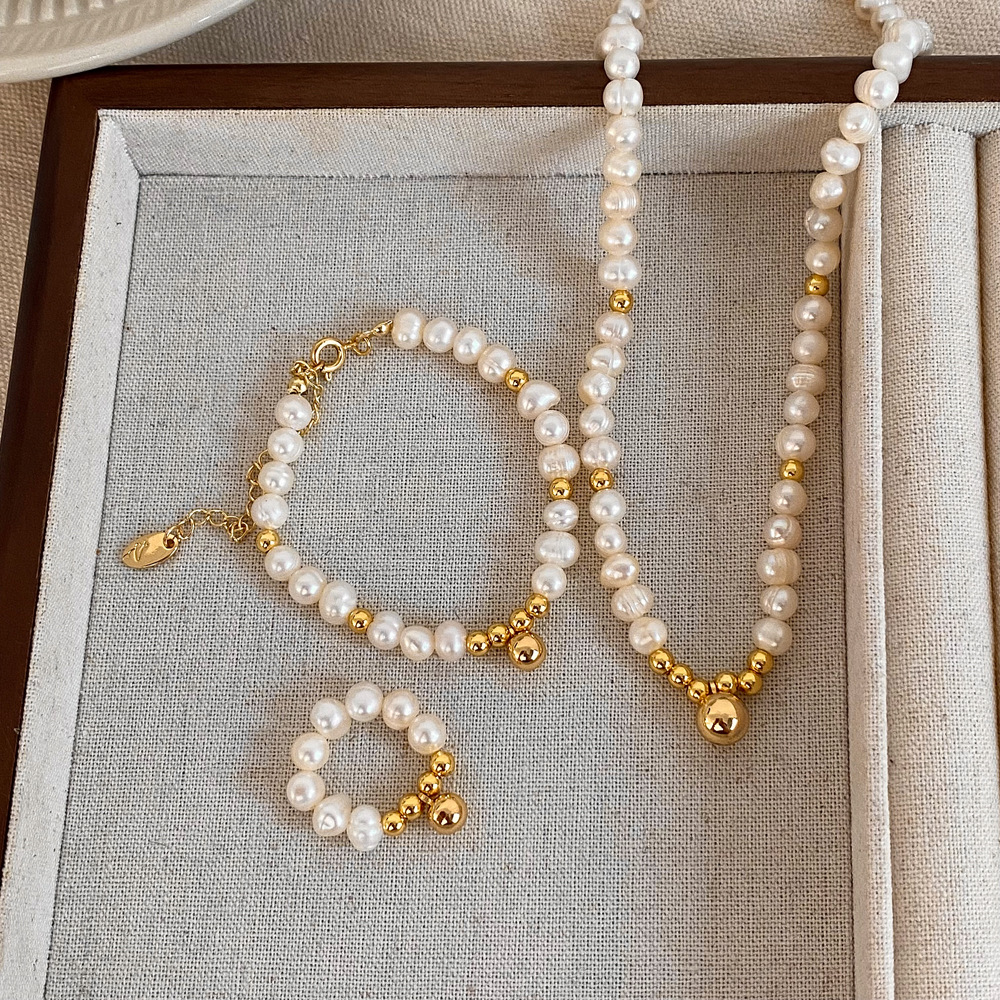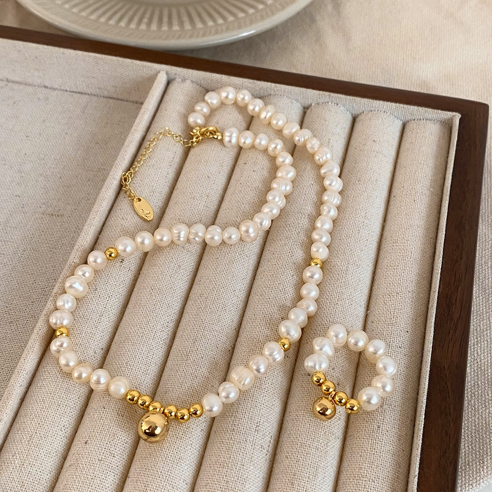 Classic Style Round Freshwater Pearl Copper Plating Gold Plated Rings Bracelets Necklace