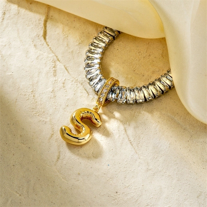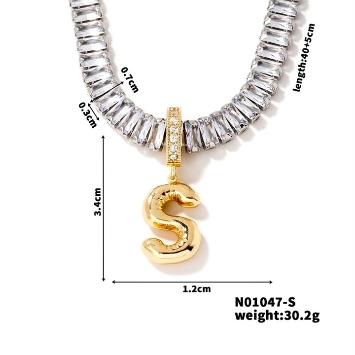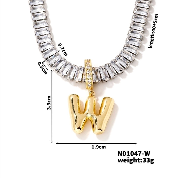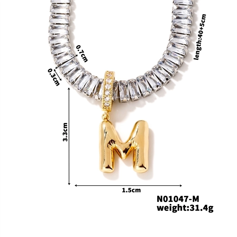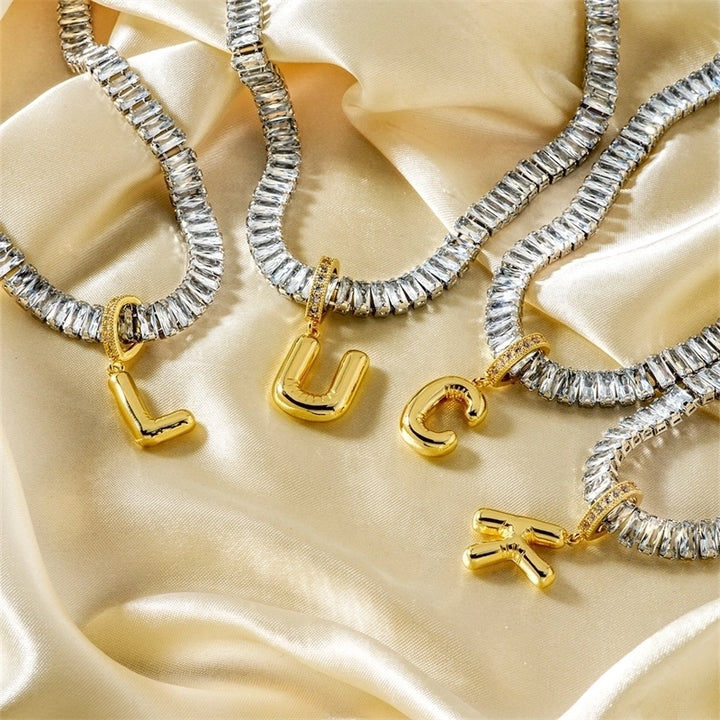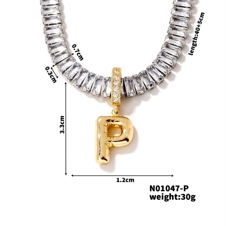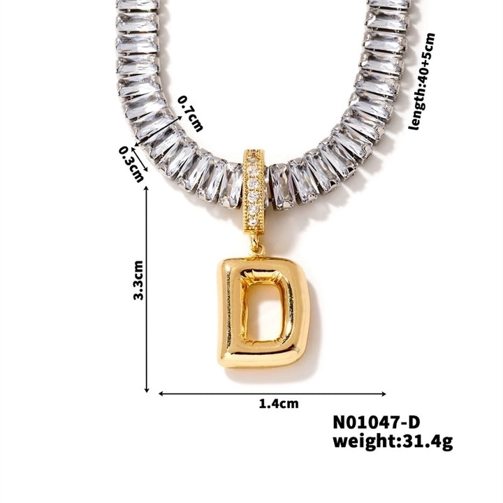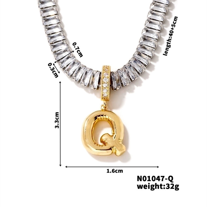 Copper K Gold Plated Inlay Letter Zircon Pendant Necklace
