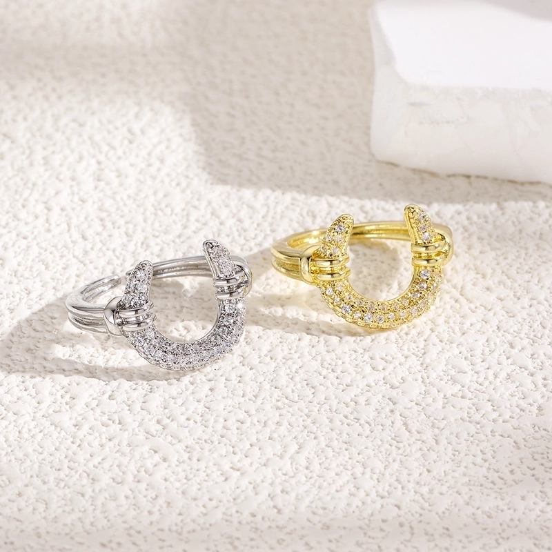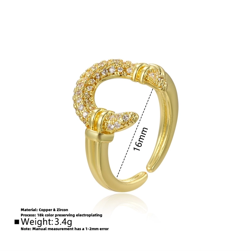 Copper Plating 18K Color-Retaining Zircon Horn Open Ring