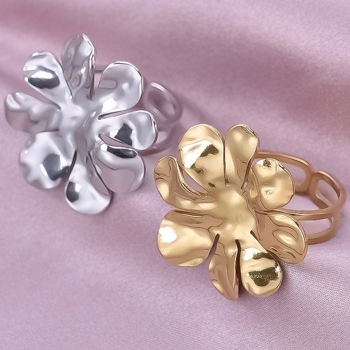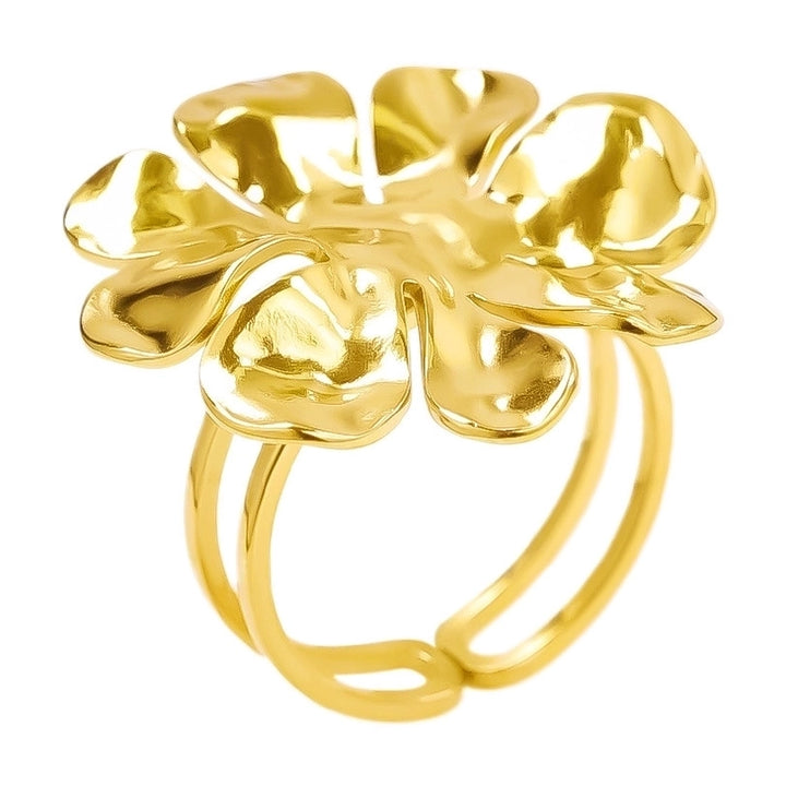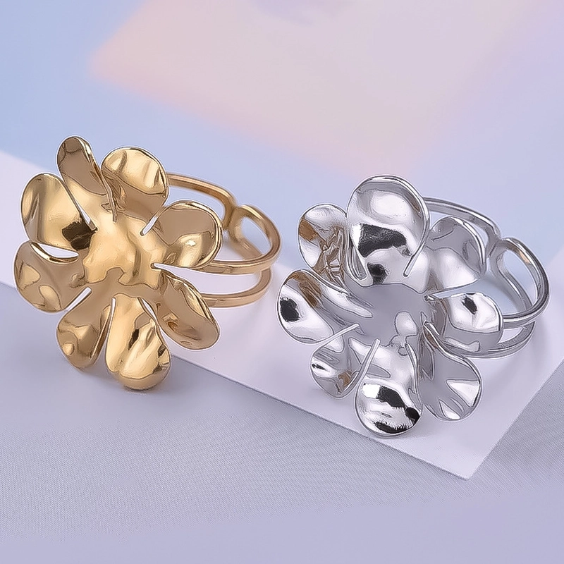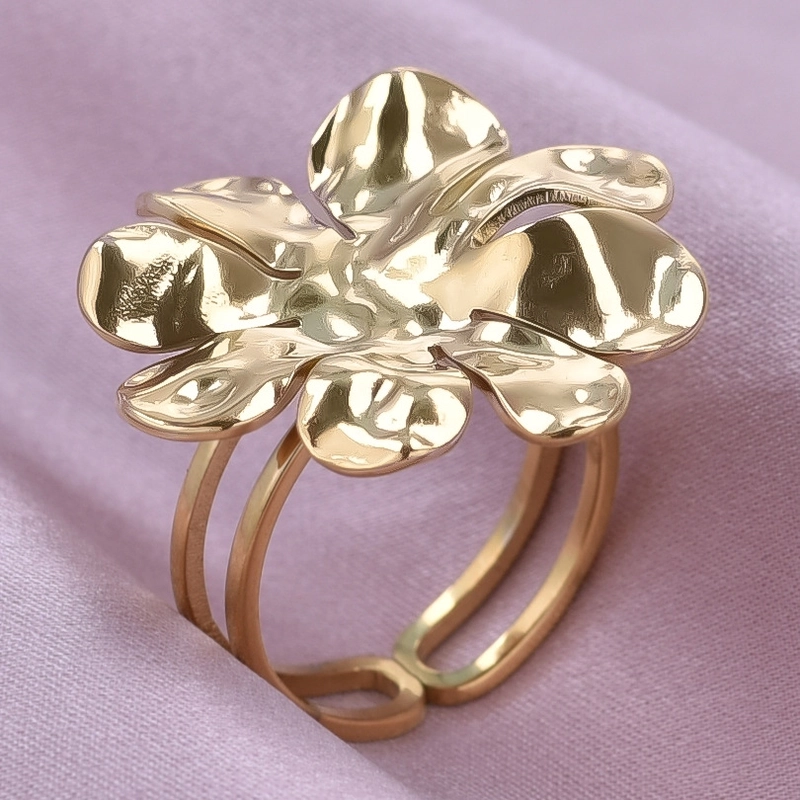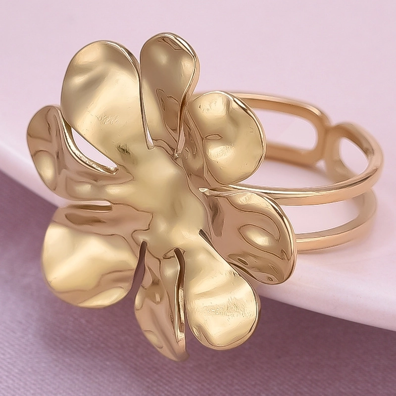 Cute Geometric Flower 304 Stainless Steel 18K Gold Plated Irregular Polishing Adjustable Ring