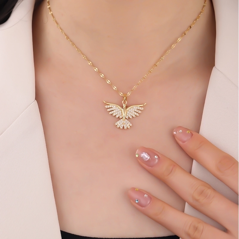 Elegant Bird 304 Stainless Steel Copper Inlay 18K Gold Plated Zircon Pendant Necklace
