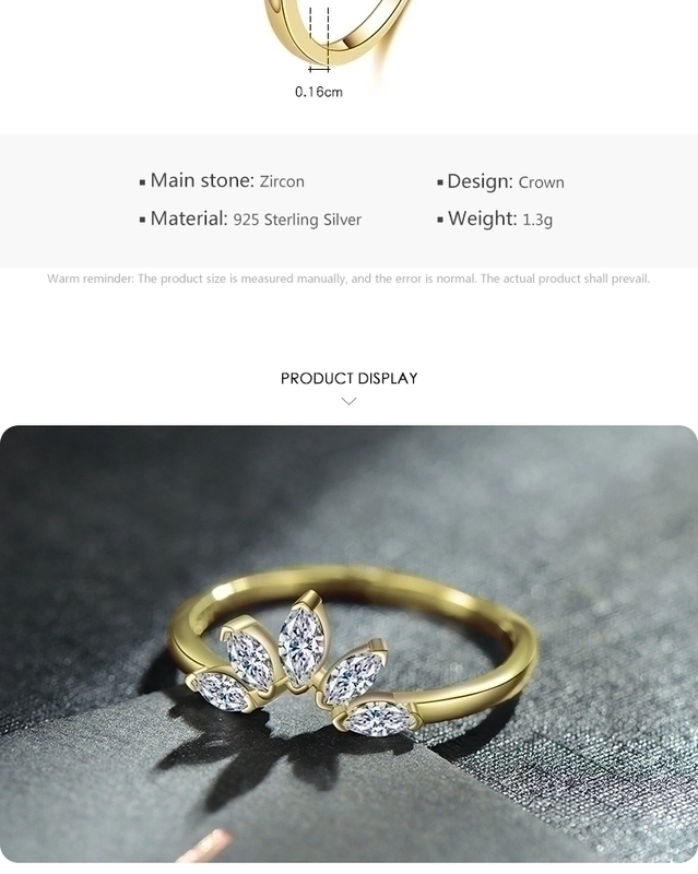 Elegant Crown Sterling Silver Plating Inlay Zircon 14K Gold Plated Rhodium Plated Rings