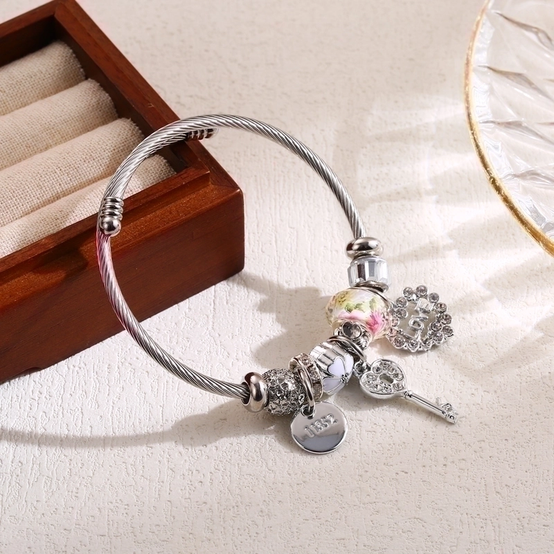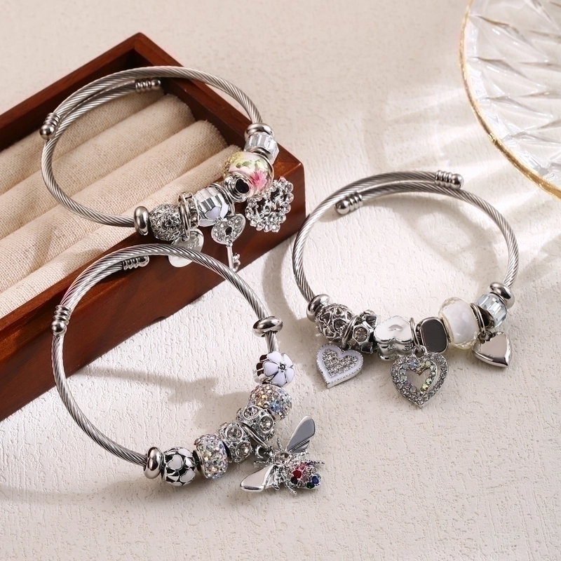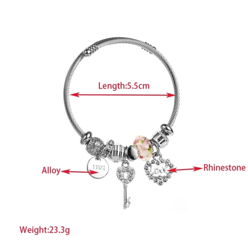 Elegant Heart Shape Bee Key 304 Stainless Steel Alloy Rhinestones Bangle In Bulk