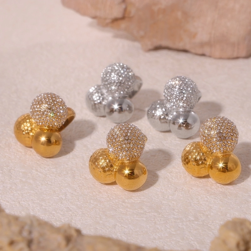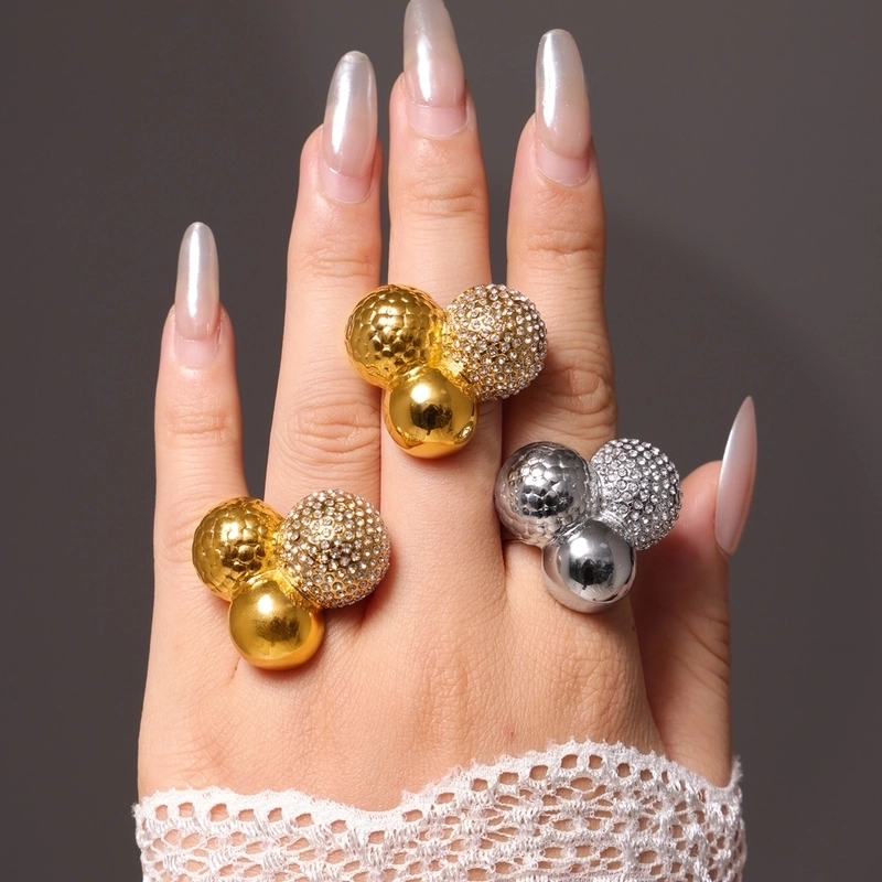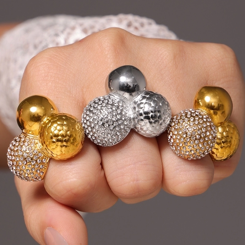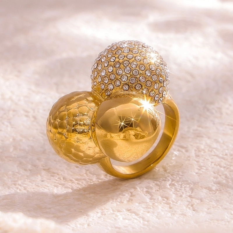 Elegant Luxurious Vacation Geometric Imitation Diamond Titanium Steel Zircon 18K Gold Plated Rings