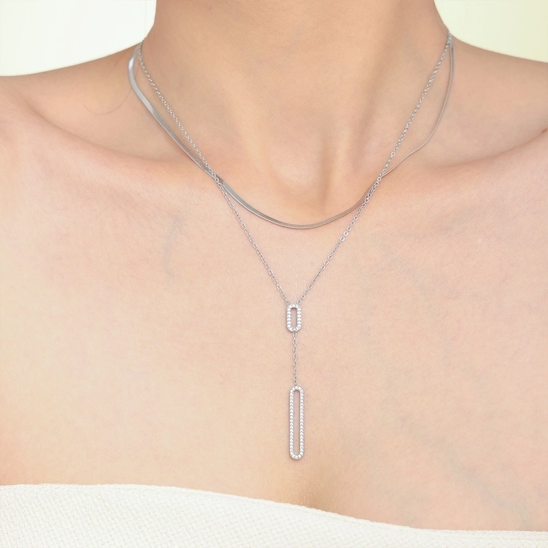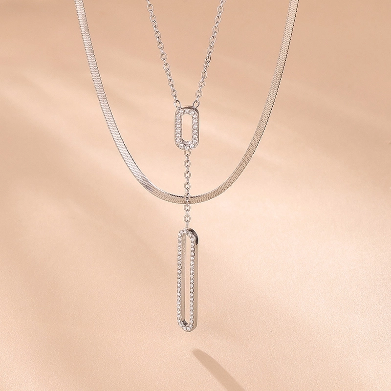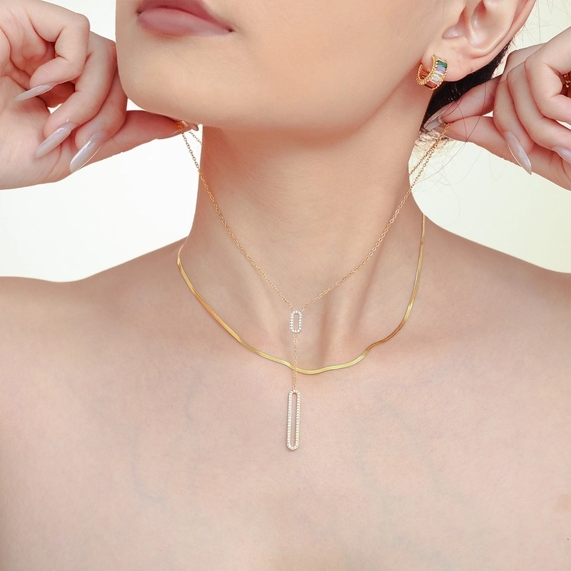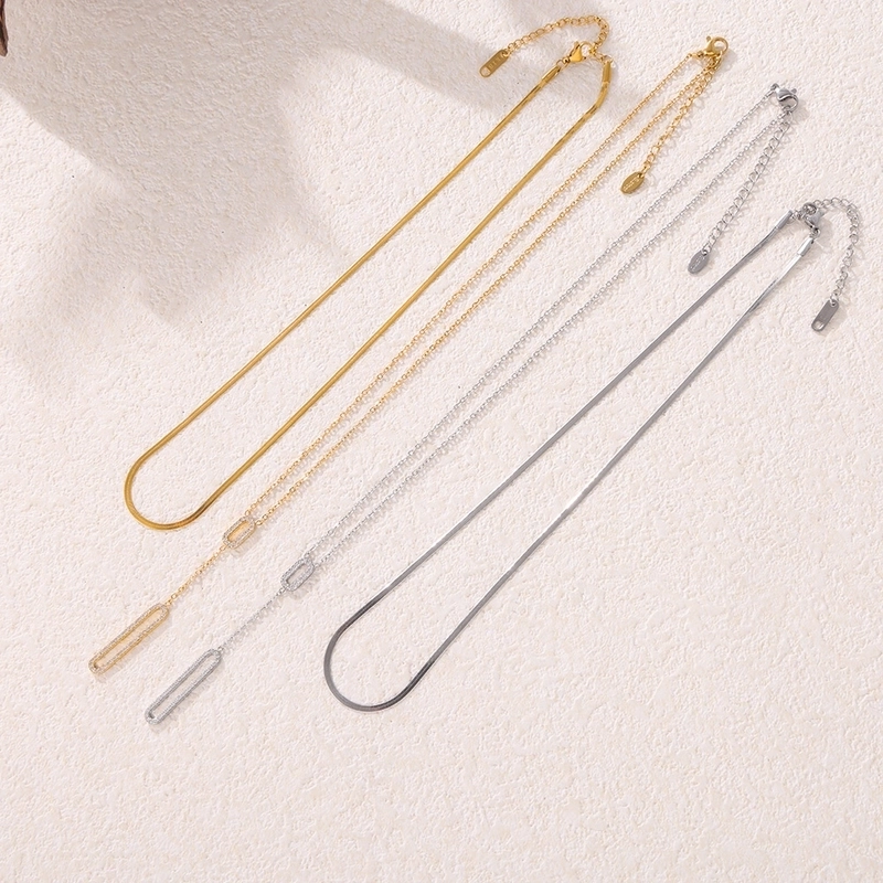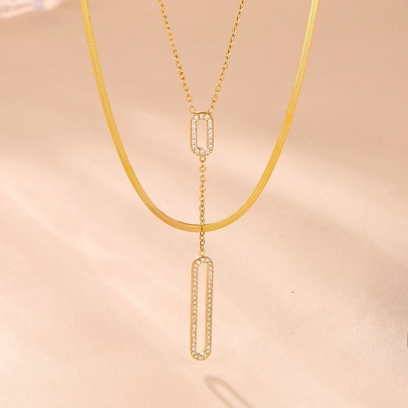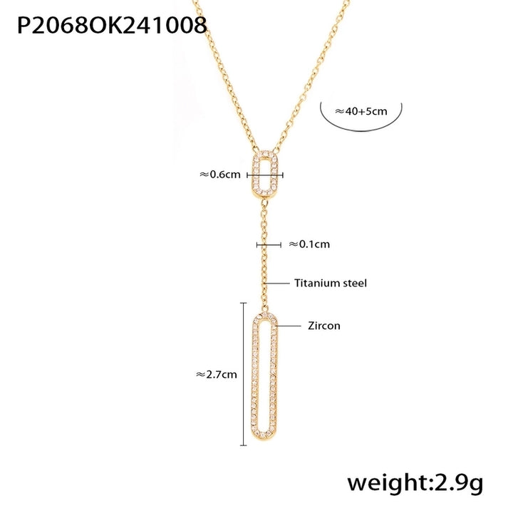 Elegant Luxurious Vacation Rectangle Titanium Steel 18K Gold Plated Rhinestone Necklace
