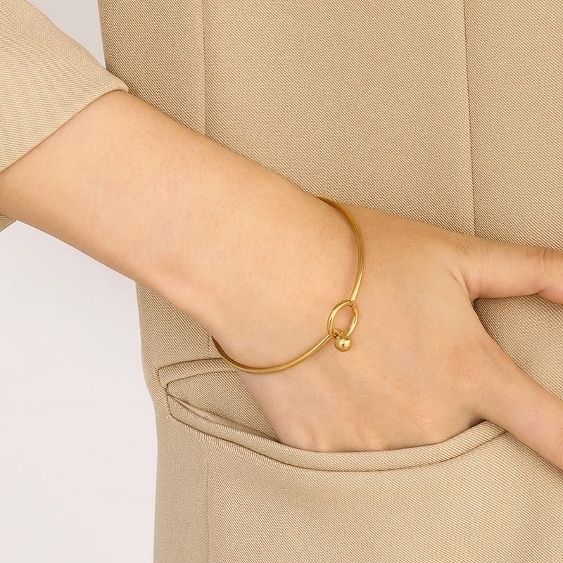 Elegant Minimalist Round Stainless Steel 18K Gold Plated Bangle In Bulk