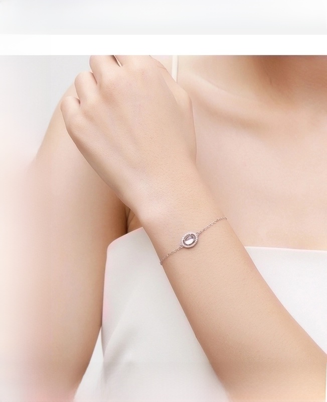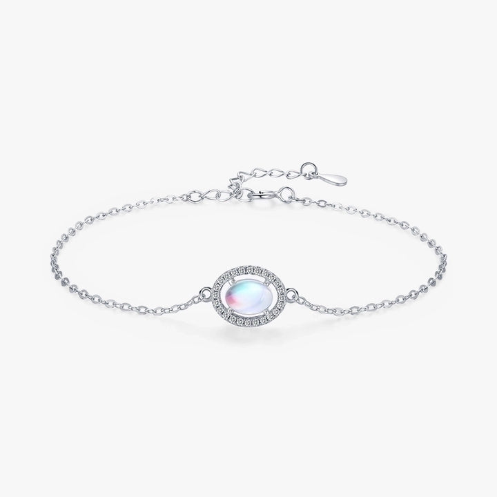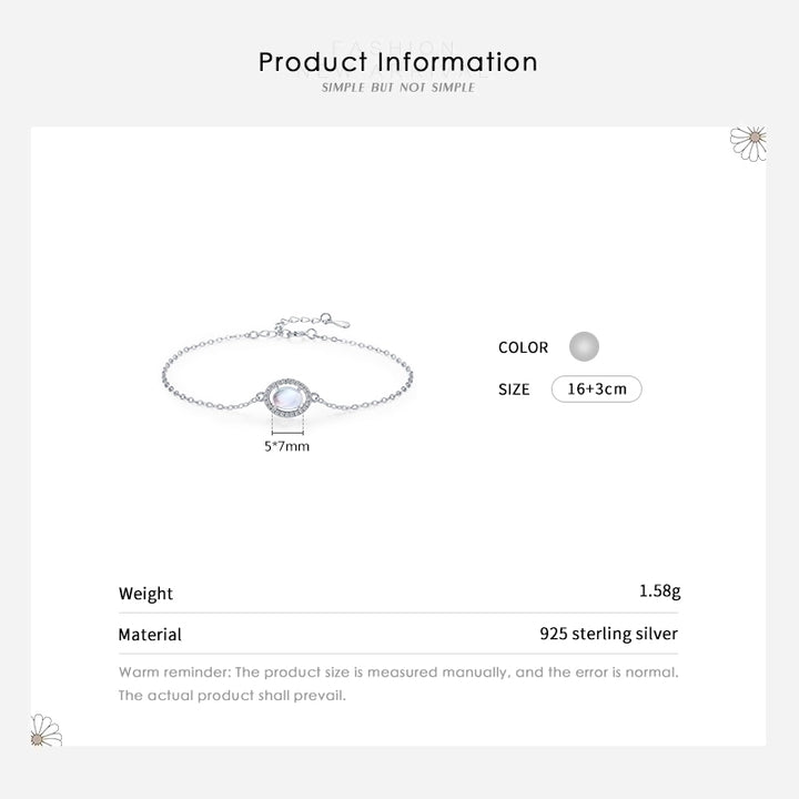 Elegant Oval Sterling Silver Plating Inlay Moonstone Zircon Rhodium Plated Bracelets