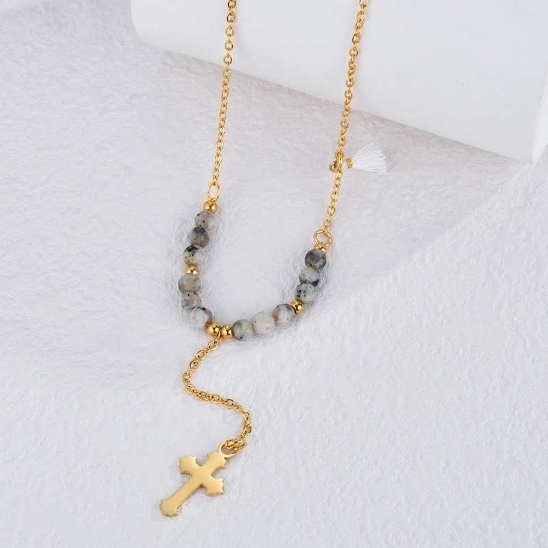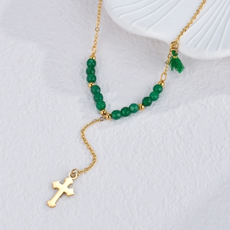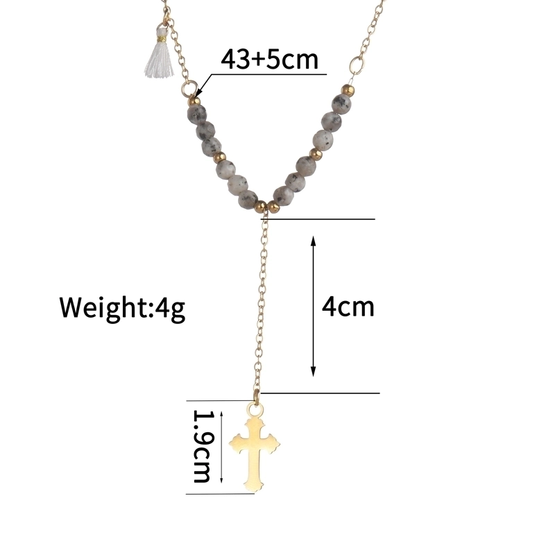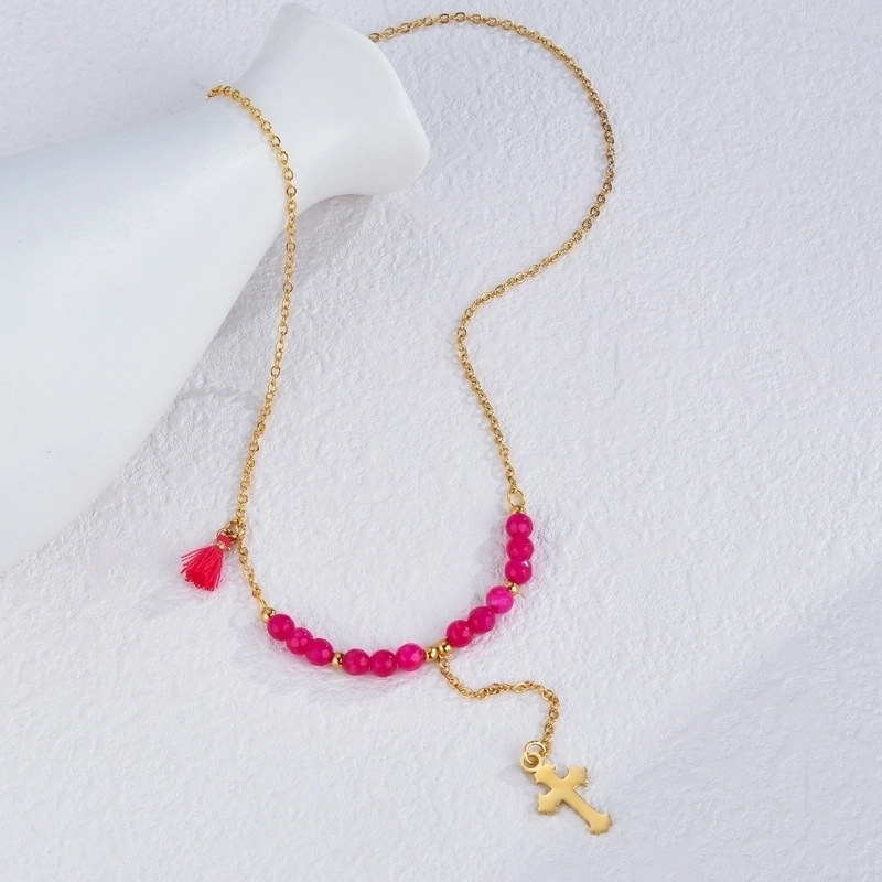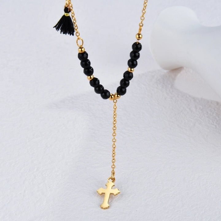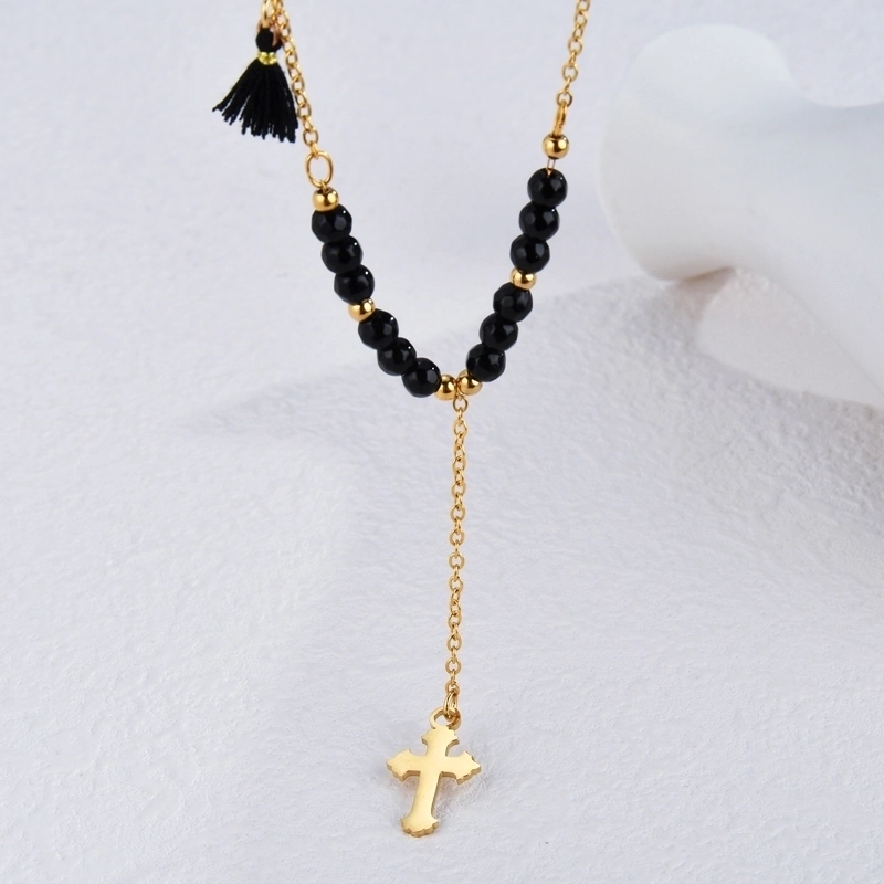 Elegant Retro Minimalist Cross 304 Stainless Steel 18K Gold Plated Tassel Pendant Necklace