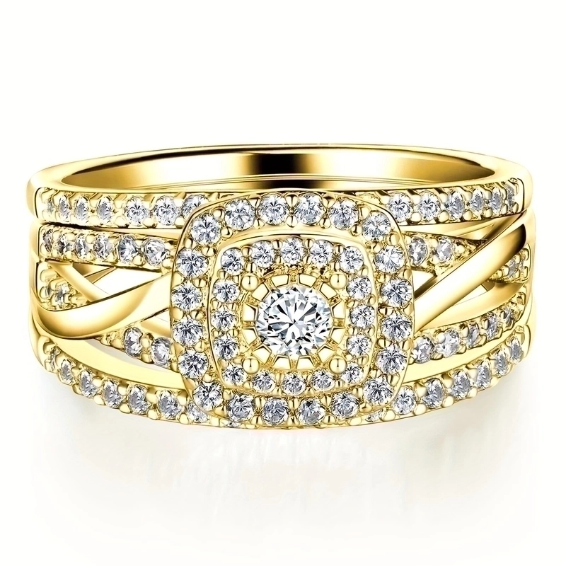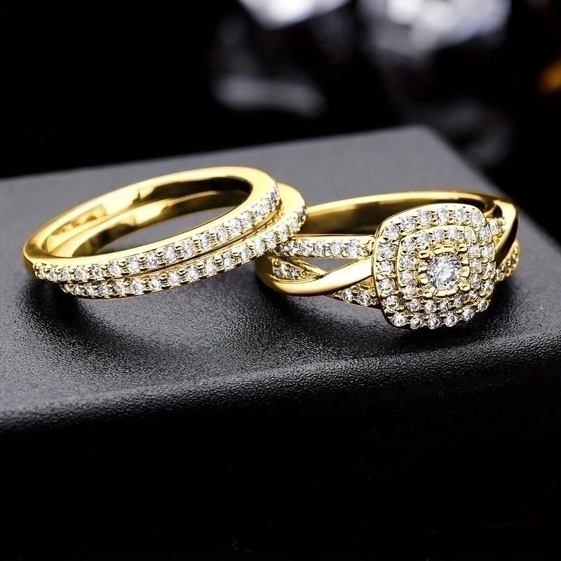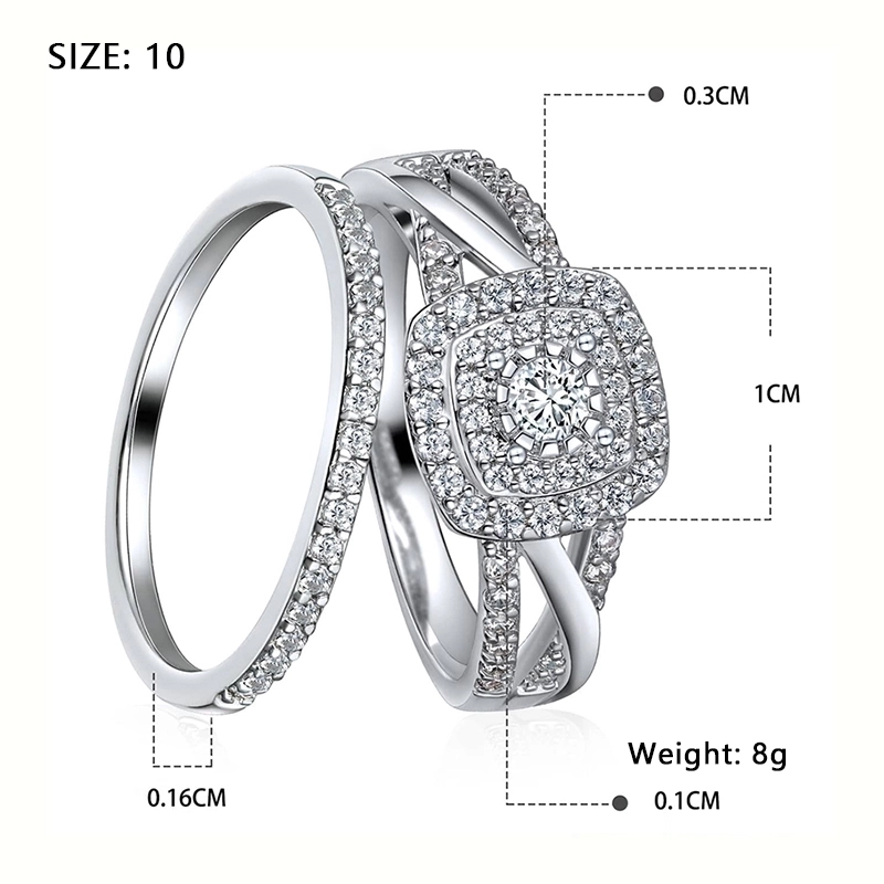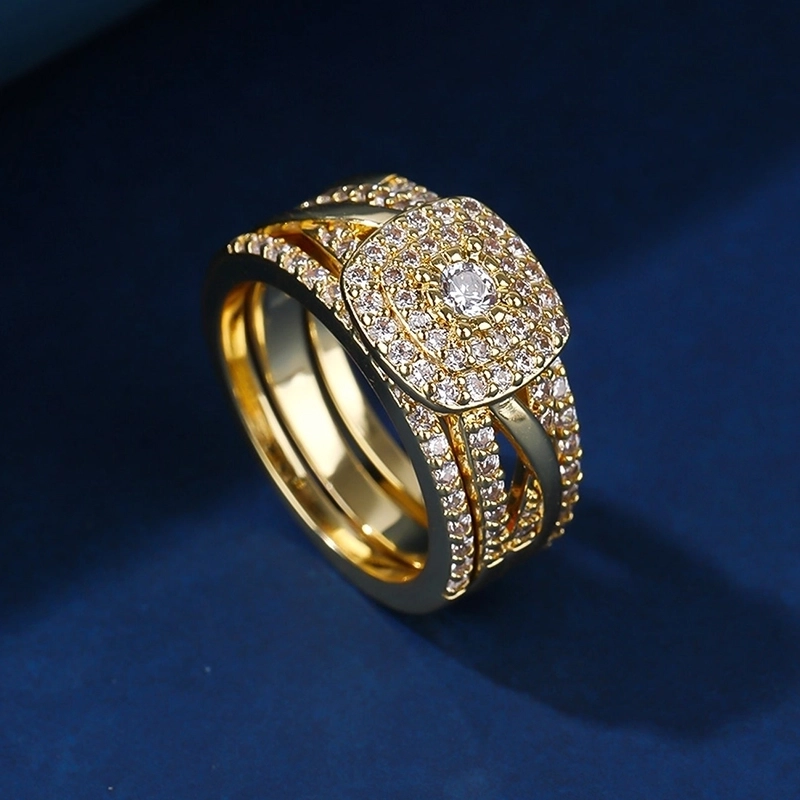 Elegant Square Copper Plating Inlay Zircon White Gold Plated Gold Plated Rings