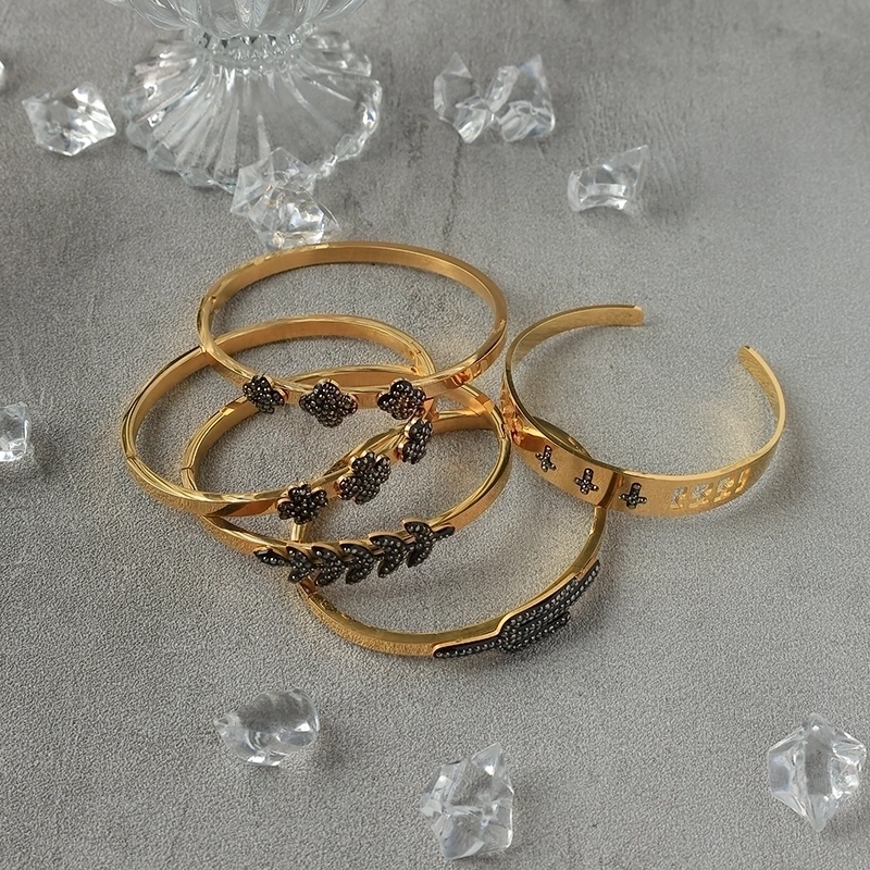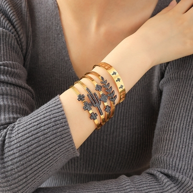 Elegant Streetwear Commute Cactus Cross Flower 304 Stainless Steel 14K Gold Plated Zircon Bangle In Bulk