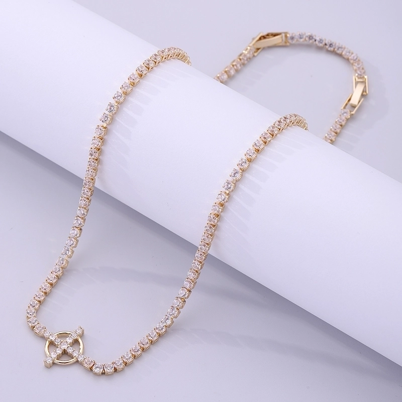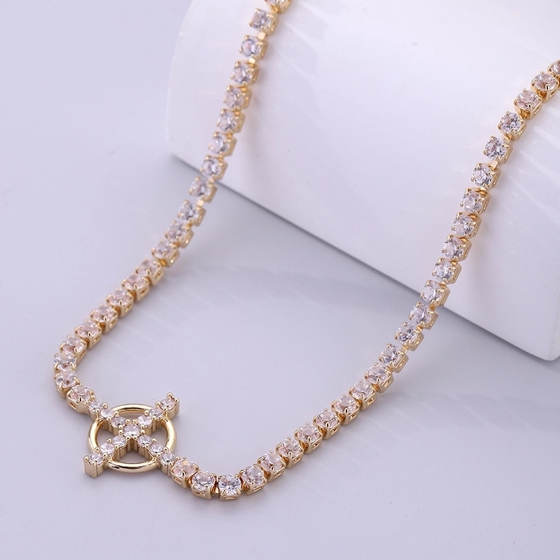Elegant Streetwear Cross Round Stainless Steel Zircon 18K Gold Plated Plating Inlay Pendant Necklace