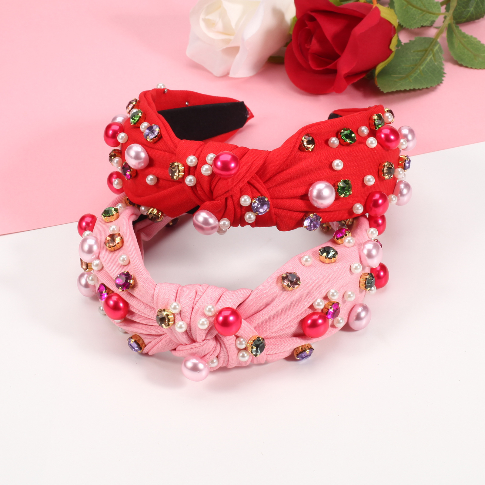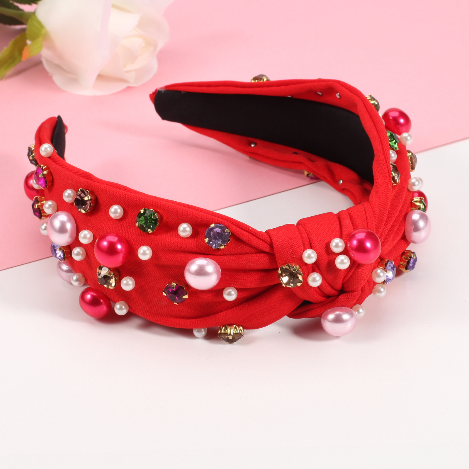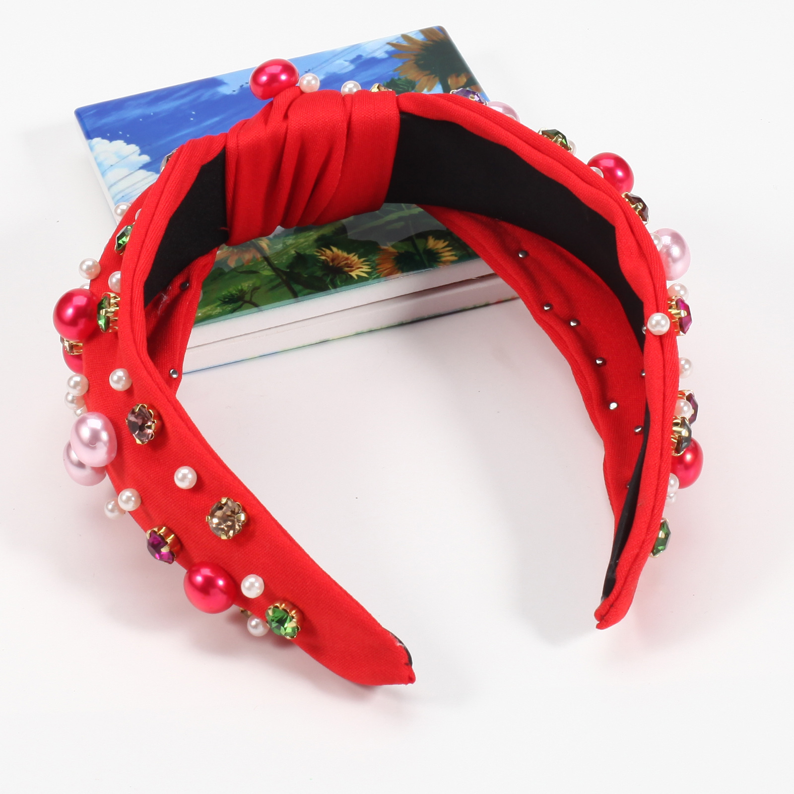 Elegant Women'S Solid Color Cloth Inlay Rhinestones Pearl Hair Band
