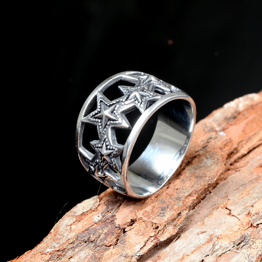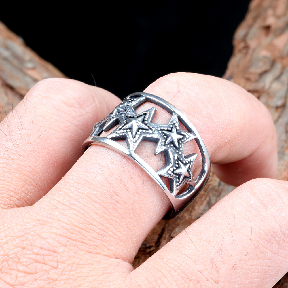 European And American Titanium Steel Domineering Personalized Men'S Six-Pointed Star Ring Stainless Steel Men'S Ring