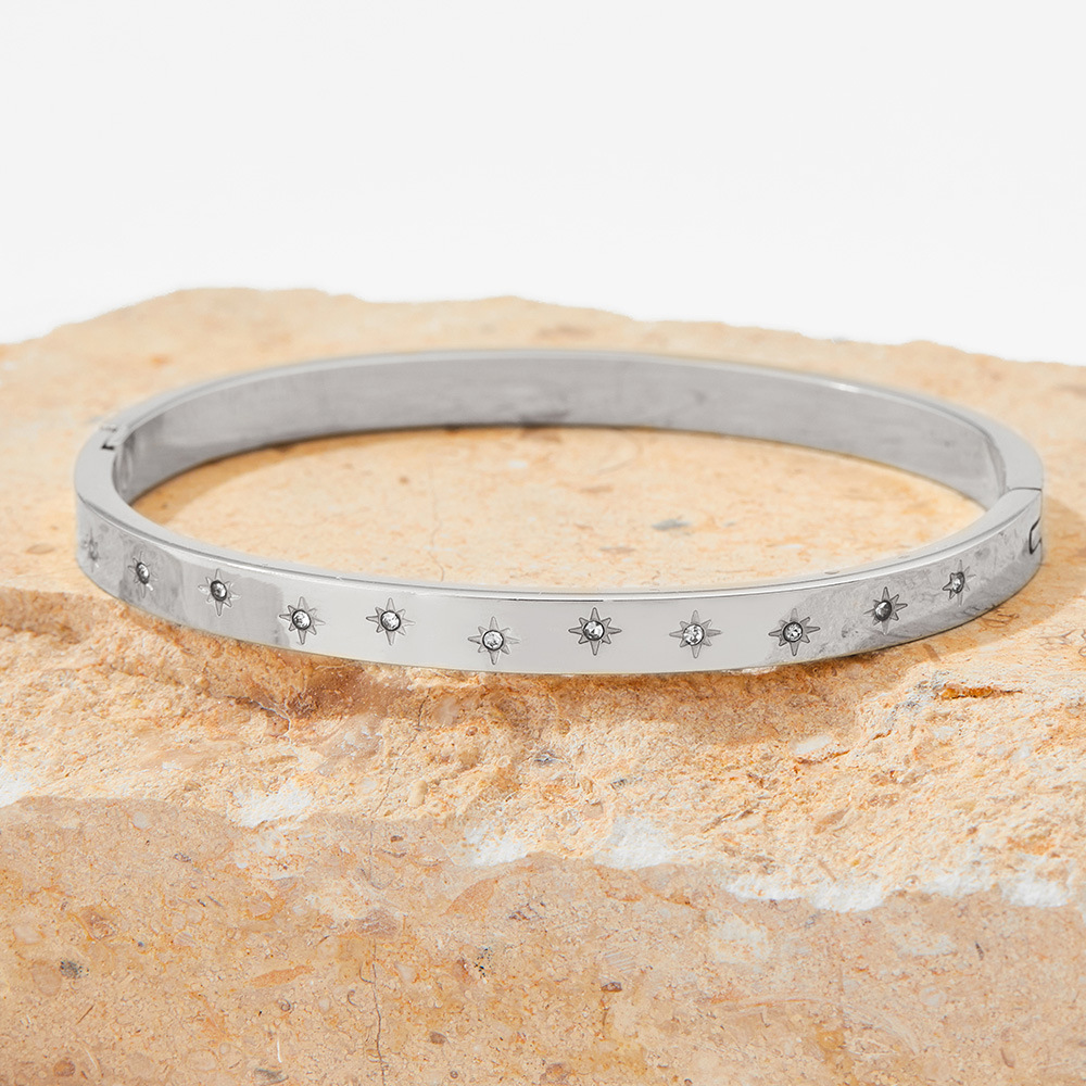 Fashion Circle 304 Stainless Steel 16K Gold Plated White Gold Plated Gold Plated Zircon Stainless Steel Bracelets In Bulk