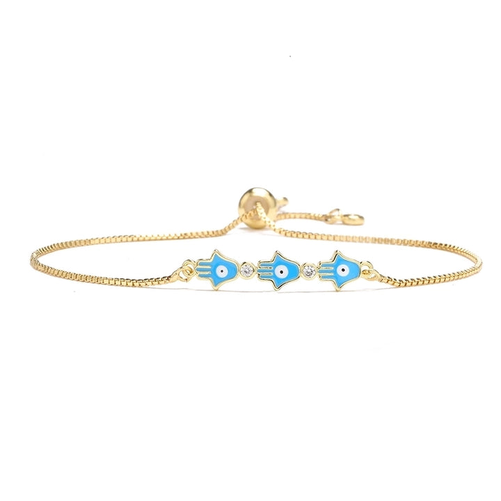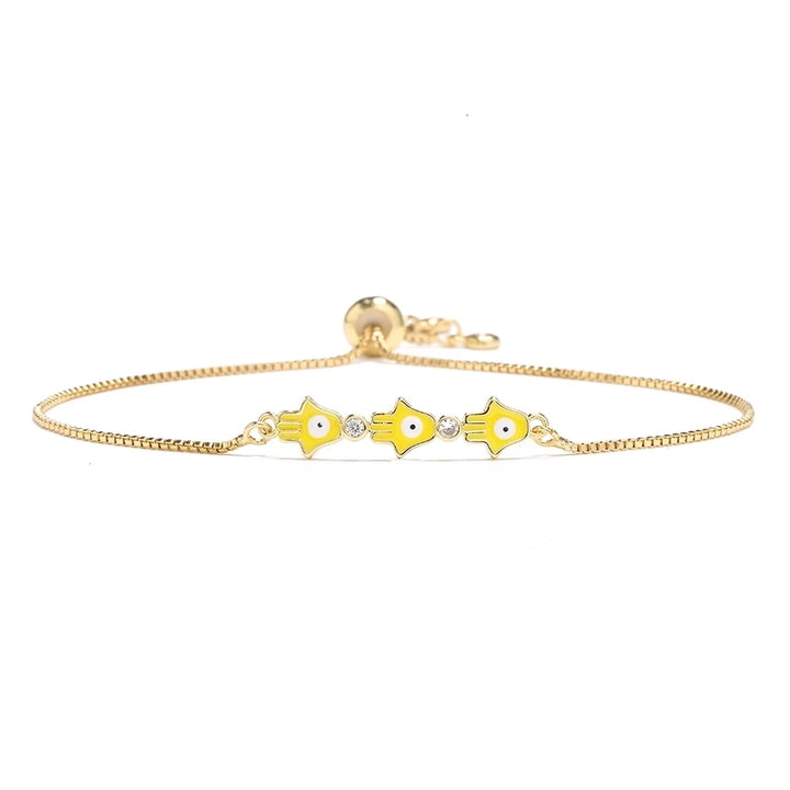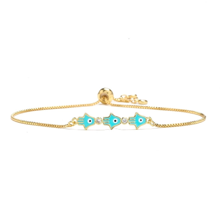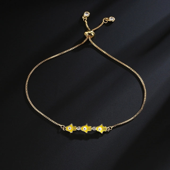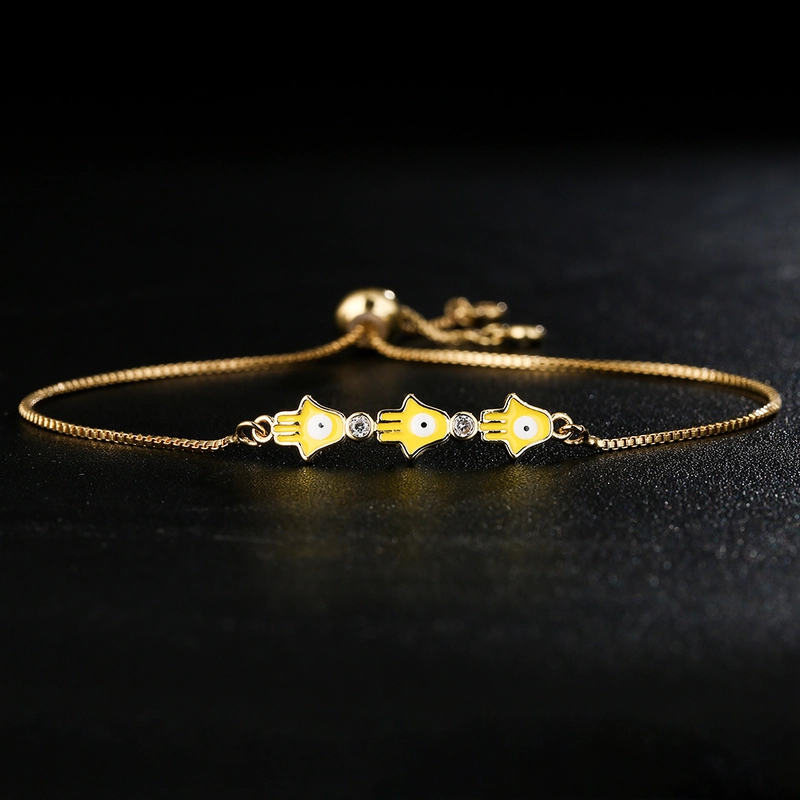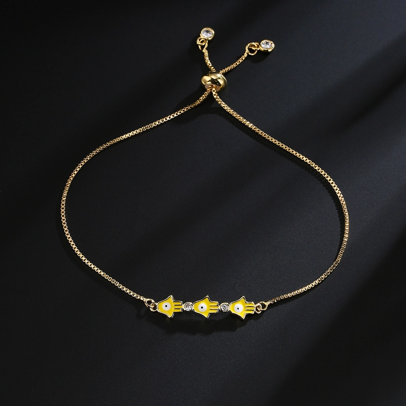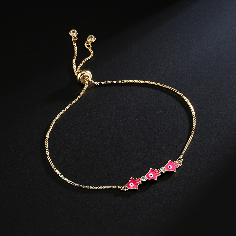 Fashion Copper Plating 18K Gold Zircon Dripping Oil Fatima Hand Adjustable Bracelet