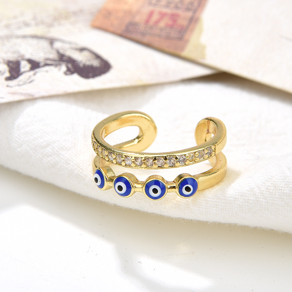 Fashion Devil'S Eye Copper Inlay Zircon Open Ring 1 Piece