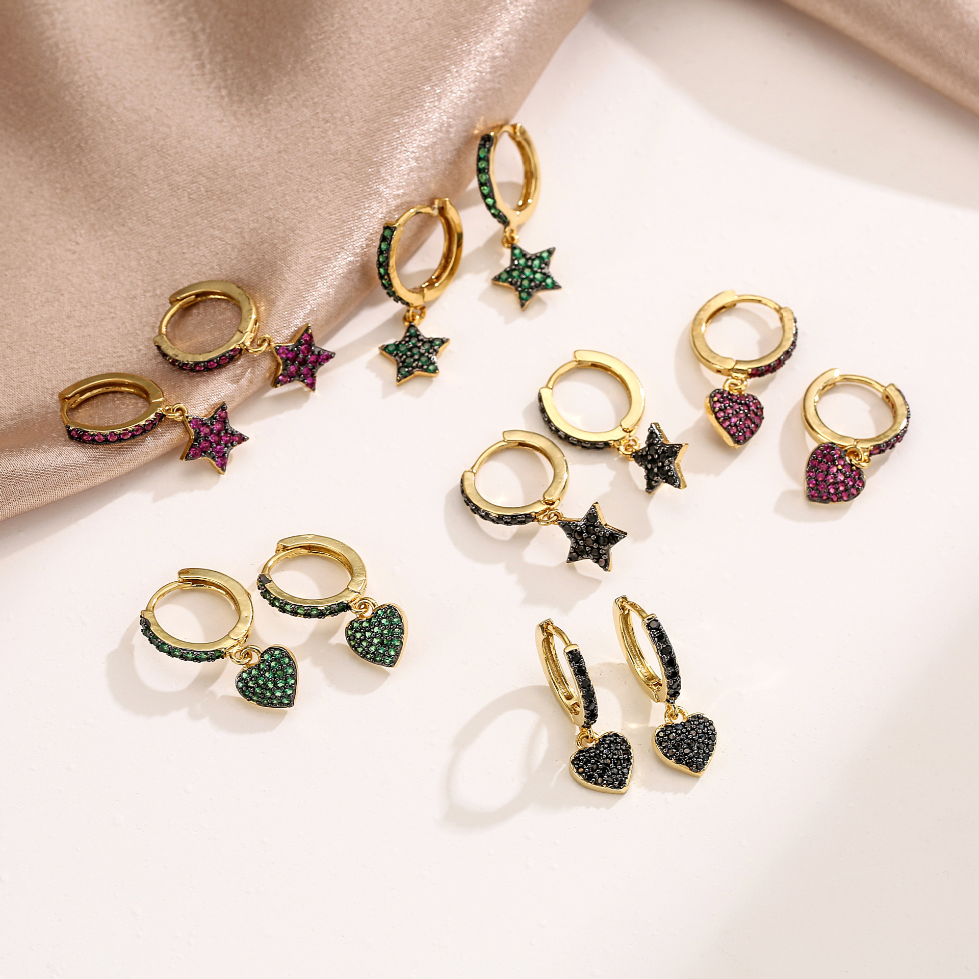 Fashion Heart Plating Copper Zircon Copper Earrings