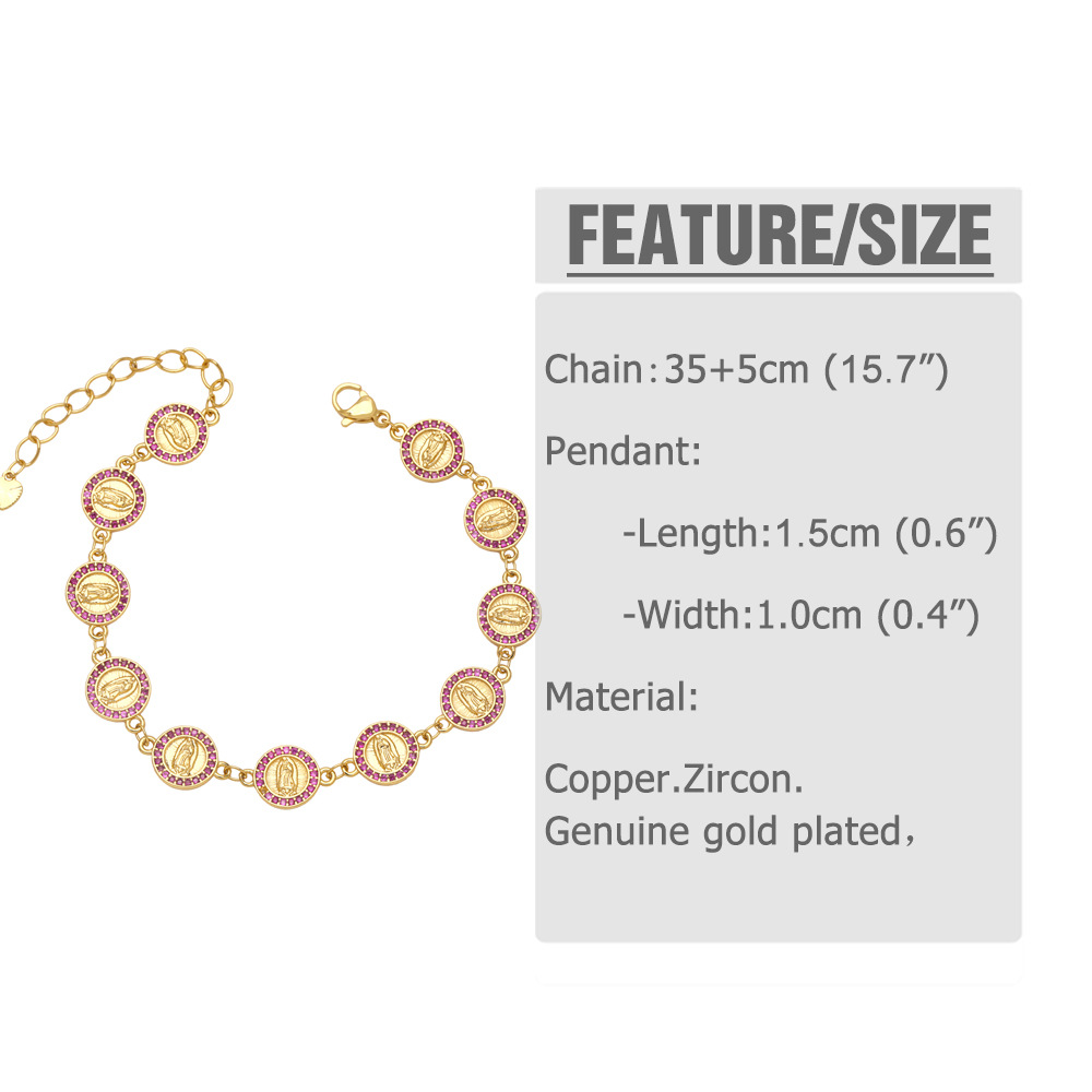 Fashion Virgin Mary Copper Bracelets Splicing Gold Plated Zircon Copper Bracelets