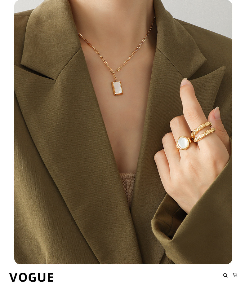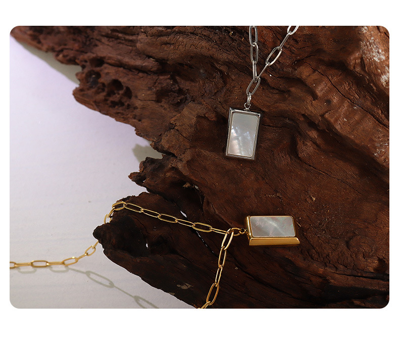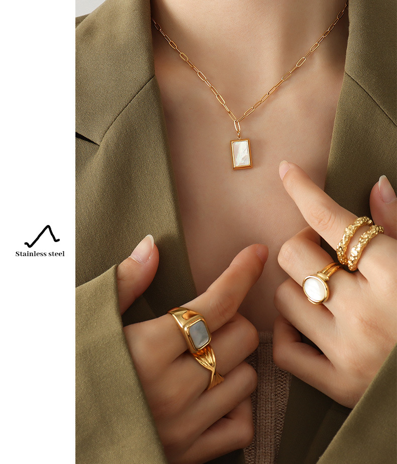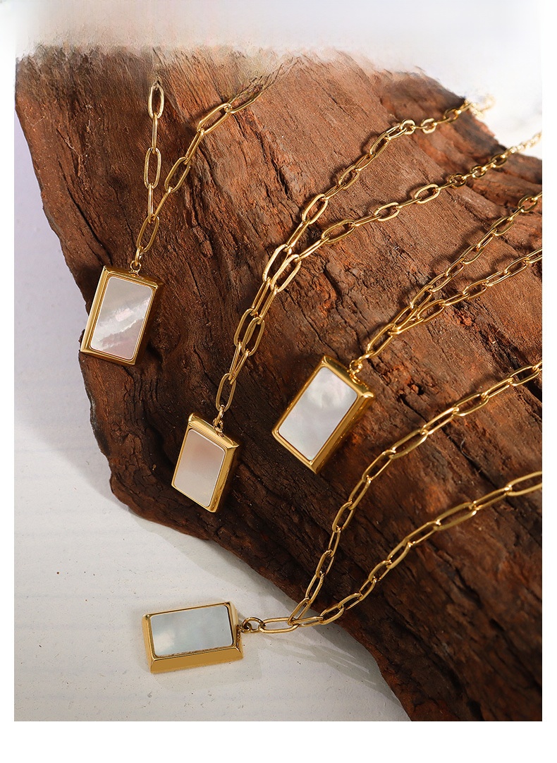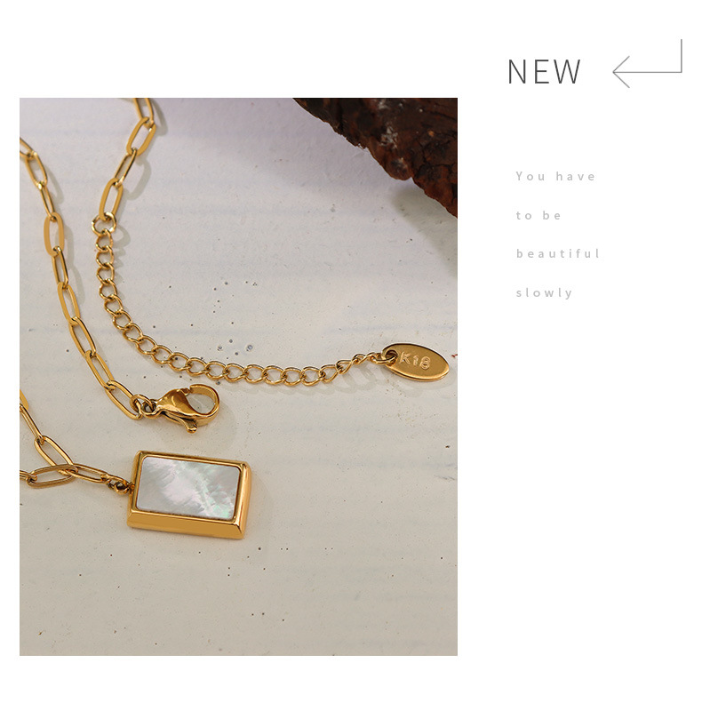 French Style Geometric 304 Stainless Steel 18K Gold Plated Plating Inlaid Shell Necklace