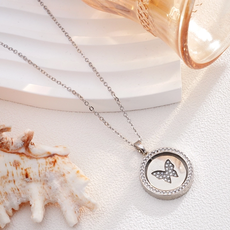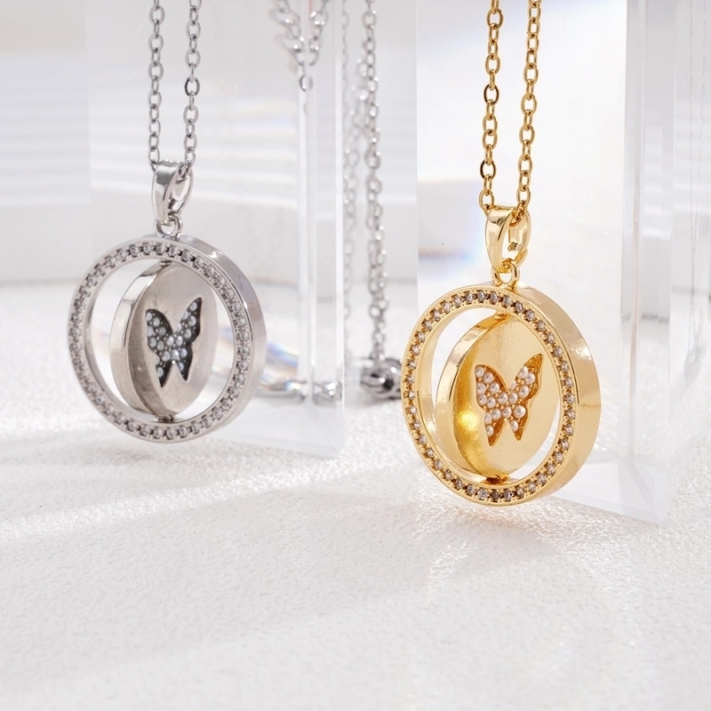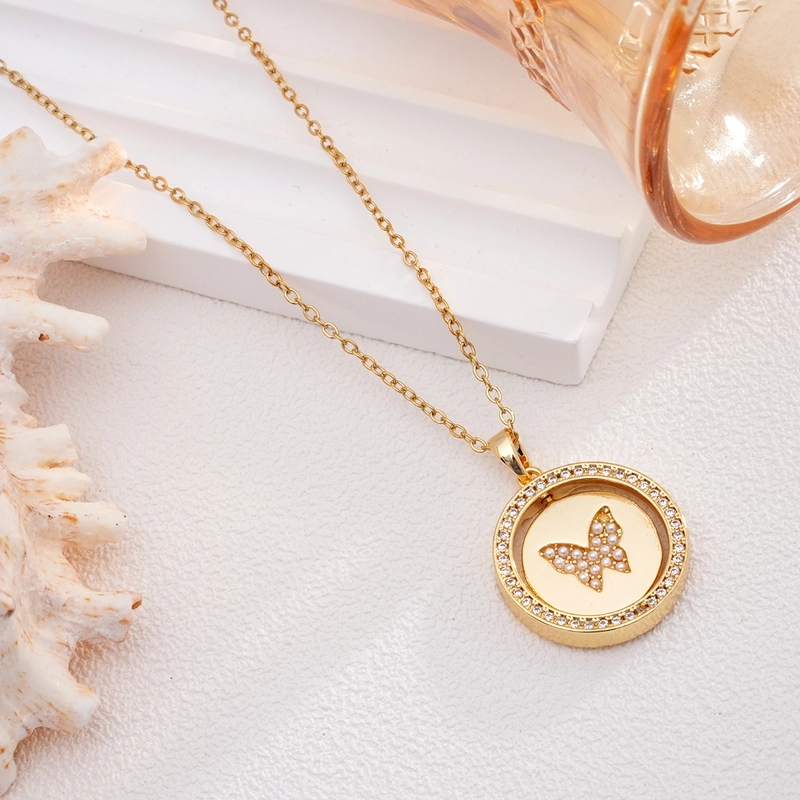 Glam Round Butterfly 304 Stainless Steel Copper Shell Zircon Inlay Pendant Necklace