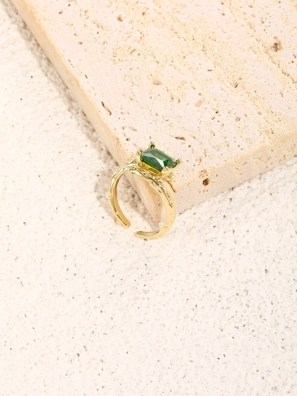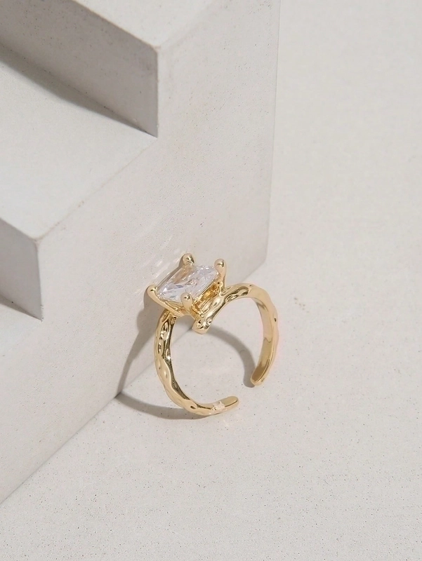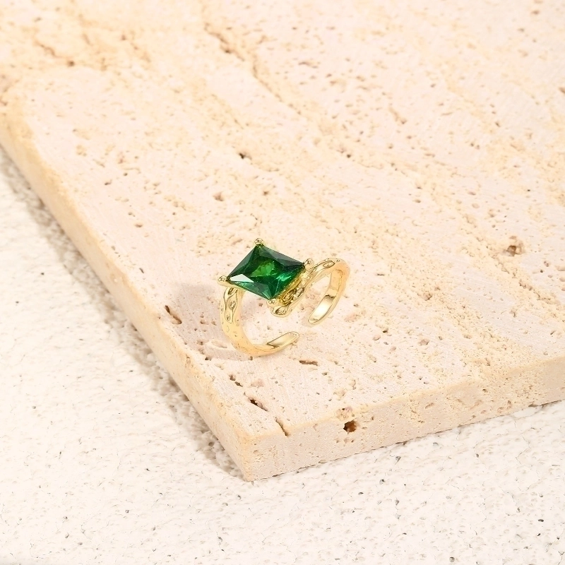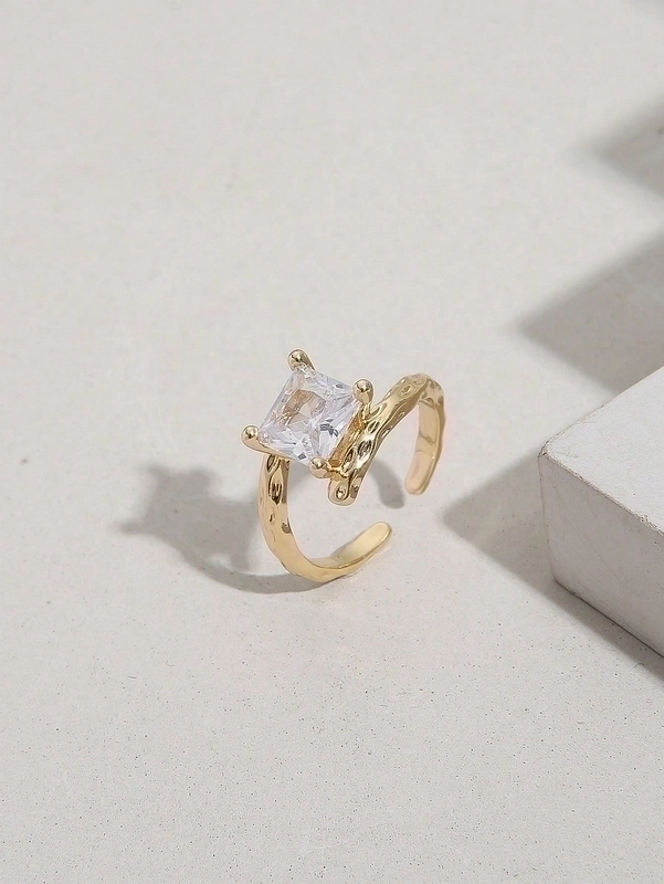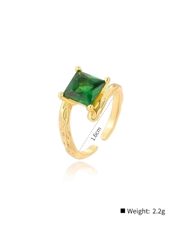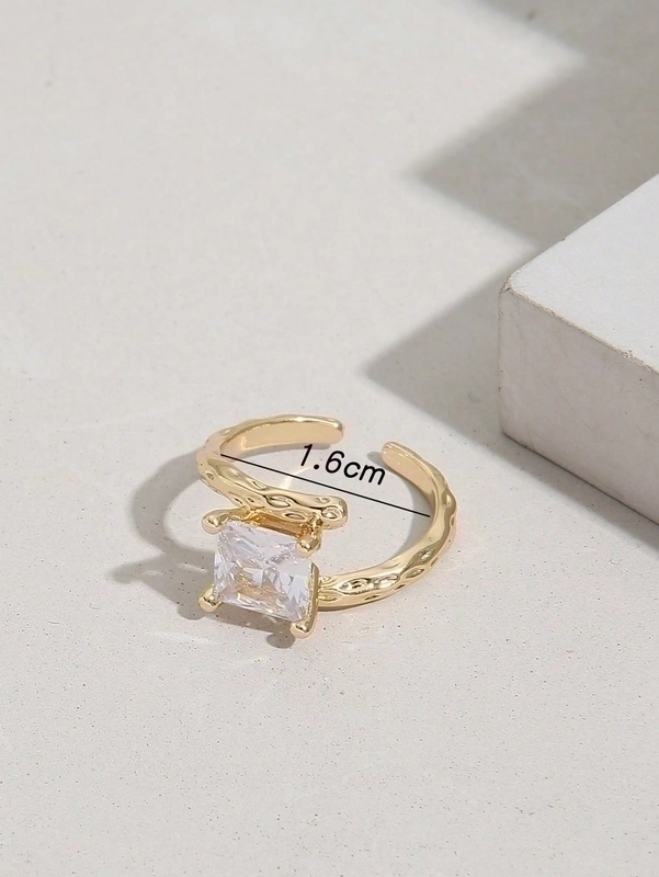 Glam Shiny Square Copper Plating Inlay Zircon 18K Gold Plated Open Rings