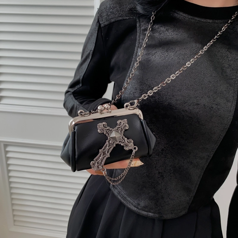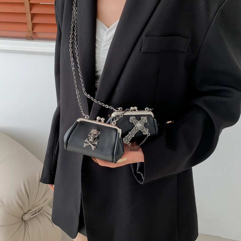 Halloween Women'S Small Pu Leather Cross Skull Streetwear Buckle Crossbody Bag
